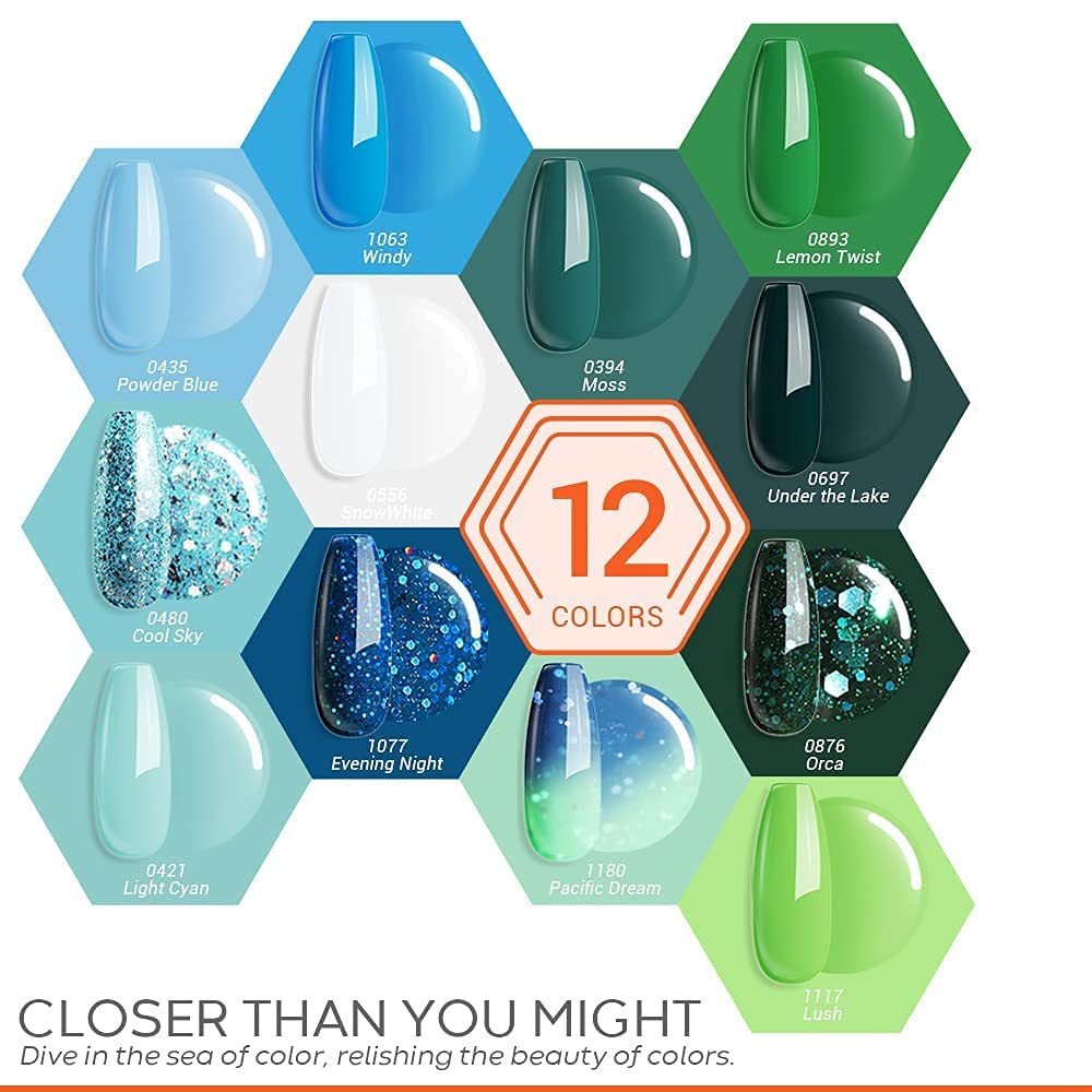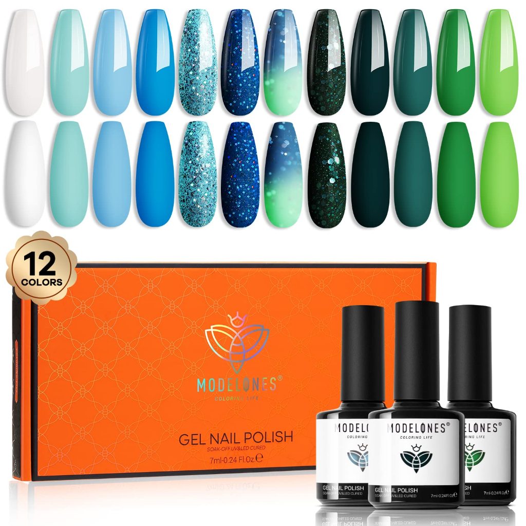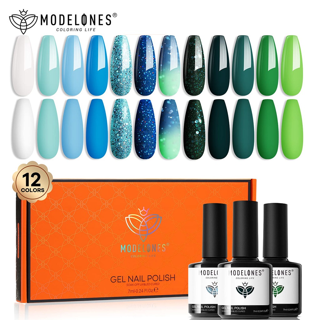 MODELONES BRIGHT GEL NAIL POLISH KIT 7ML SUMMER NEON 12 COLORS SET HOT PINK GREEN GLITTER WARNA DENGAN BOND PRIMER GLOSS
