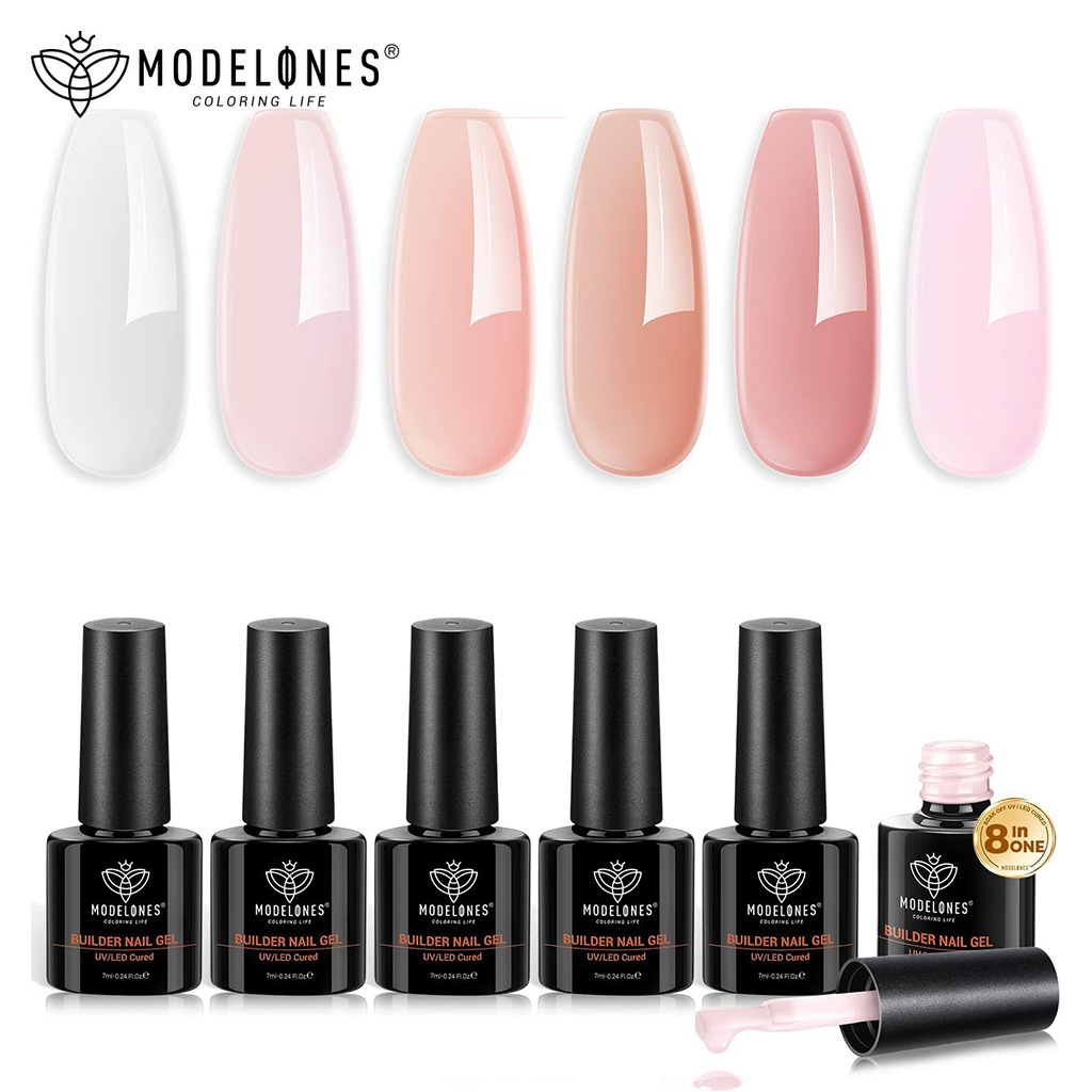 MODELONES BUILDER NAIL GEL SET, 6 COLORS GEL BUILDER 8-IN-ONE, JELLY NUDE PINK HARD GEL BUILDER NAIL STRENGTHENER EXTENS
