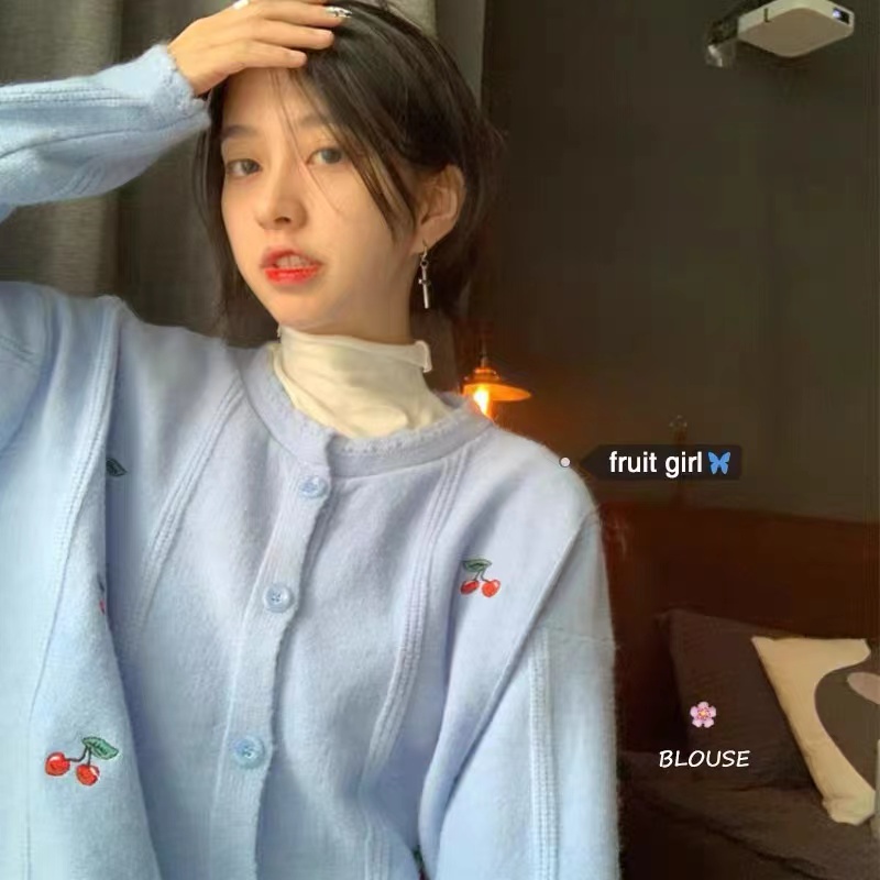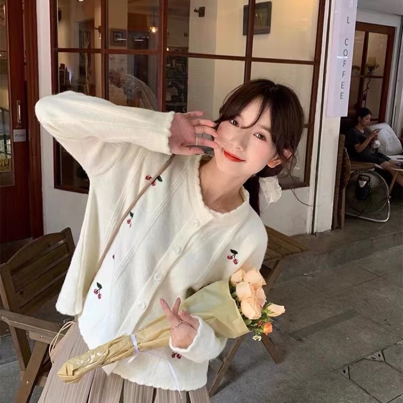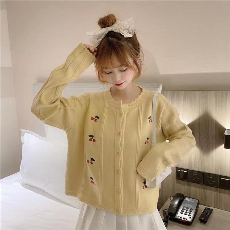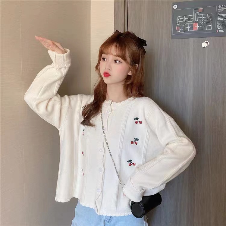 Kardigan Rajut Kasual Cherry Cardigan Knit Wanita