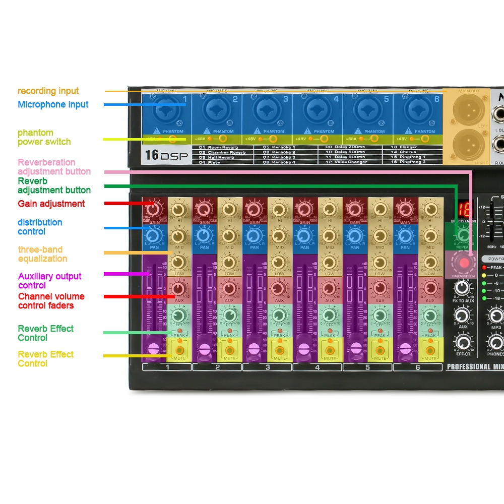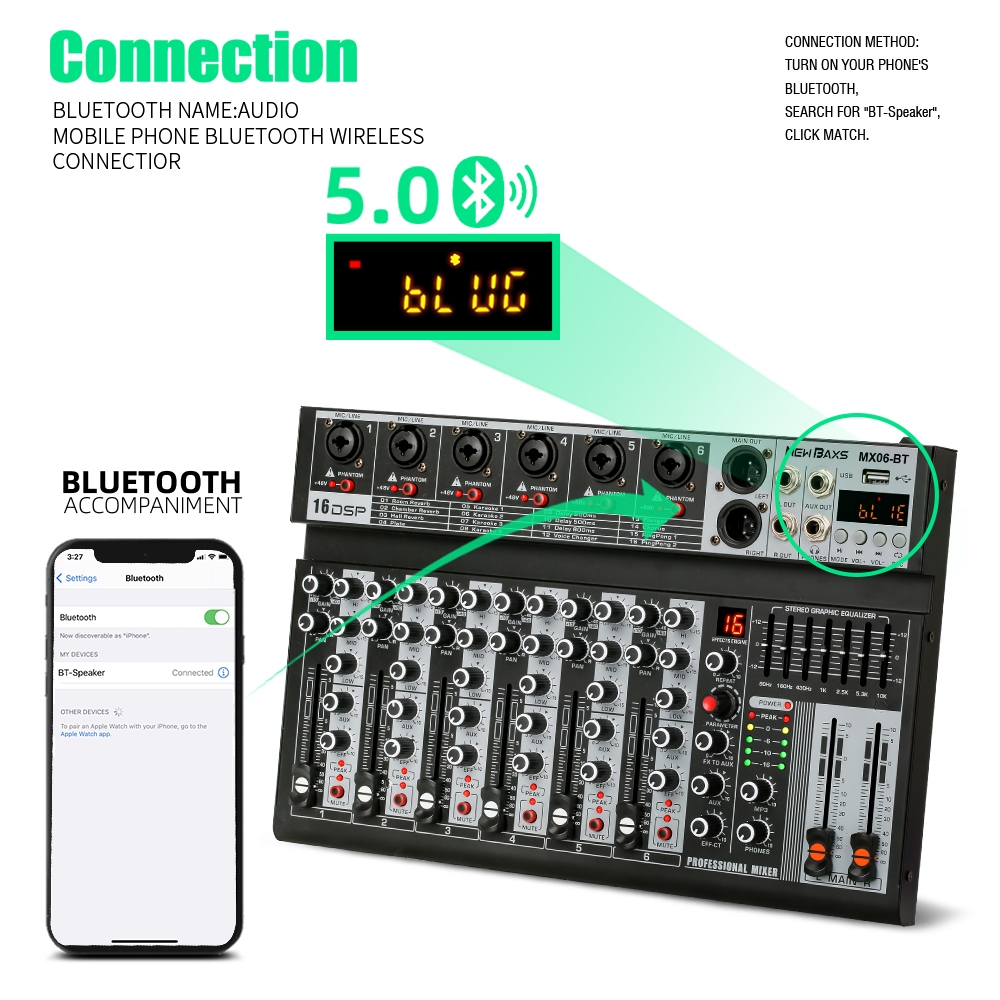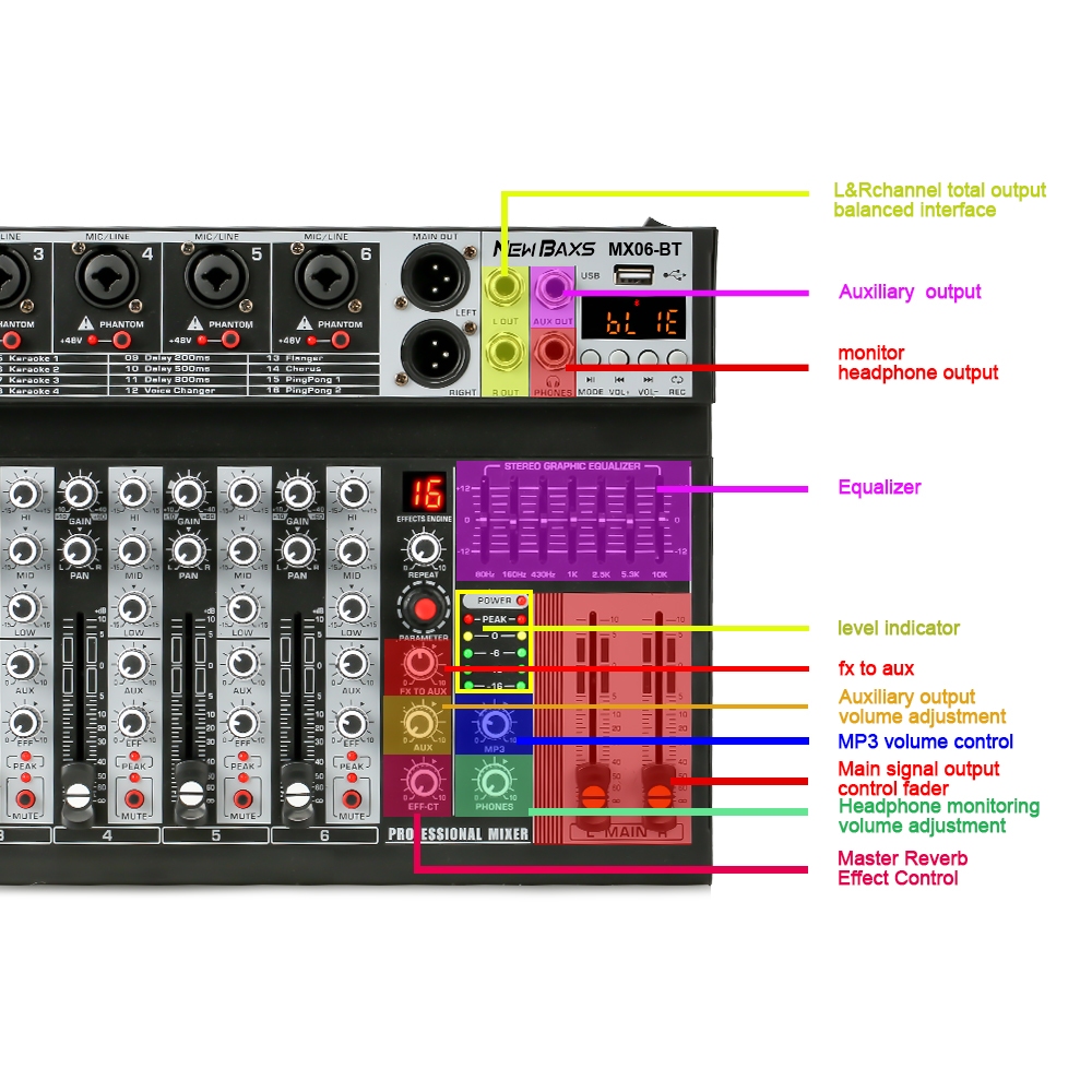 NEW BAXS MX06BT / MX04BT AUDIO MIXER PROFESSIONAL SOUND EQUALIZER MX06BT / MX04BT 6/4-CHANNEL EQ EFFECT 16 DSP SIGNAL