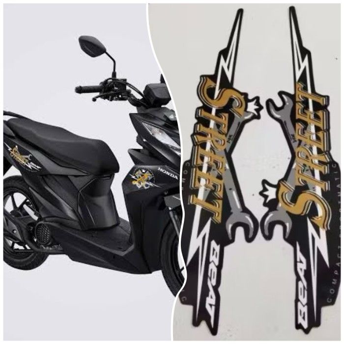 Stiker Motor Stiker Striping List Body Motor Honda Beat Street 2020 Silver - Hitam