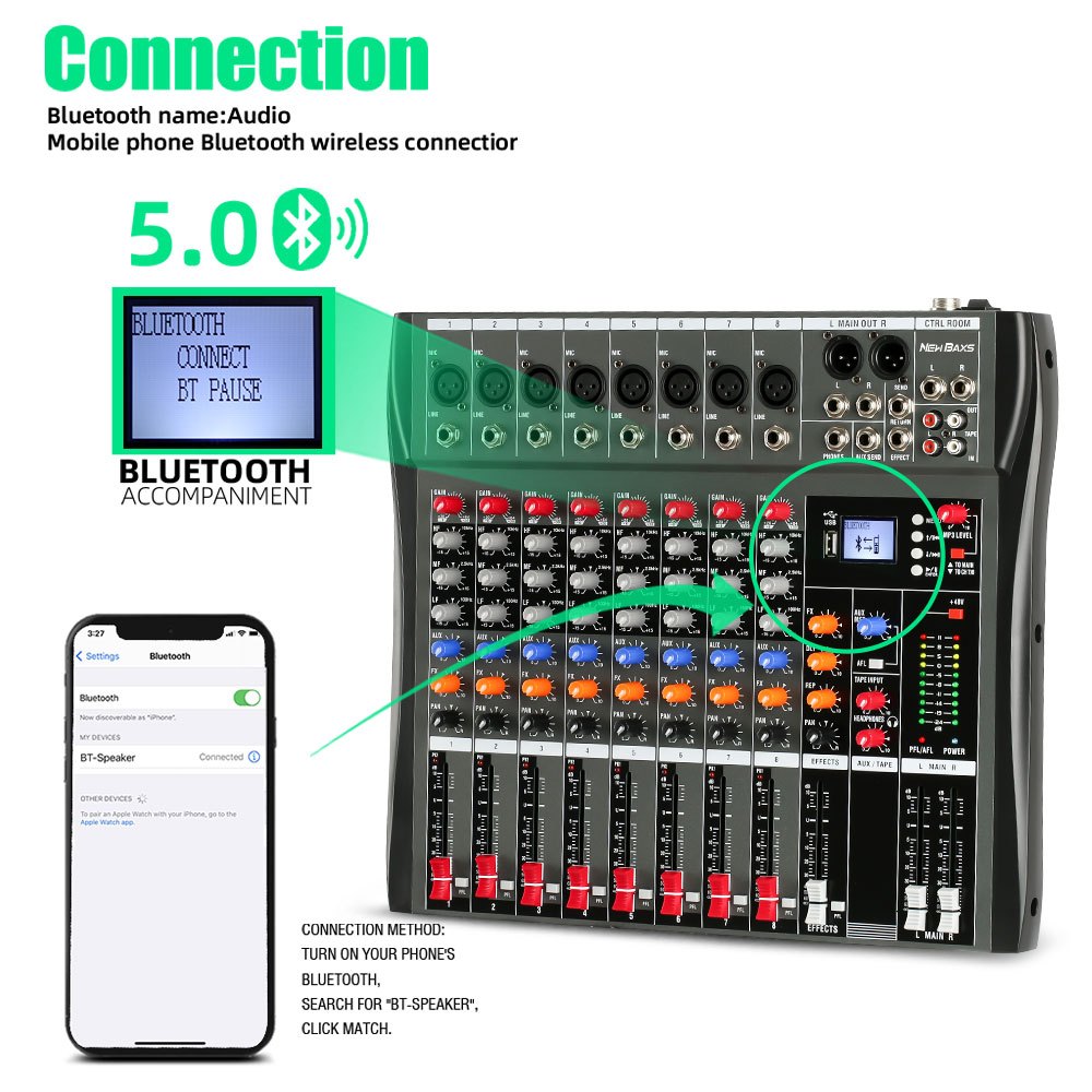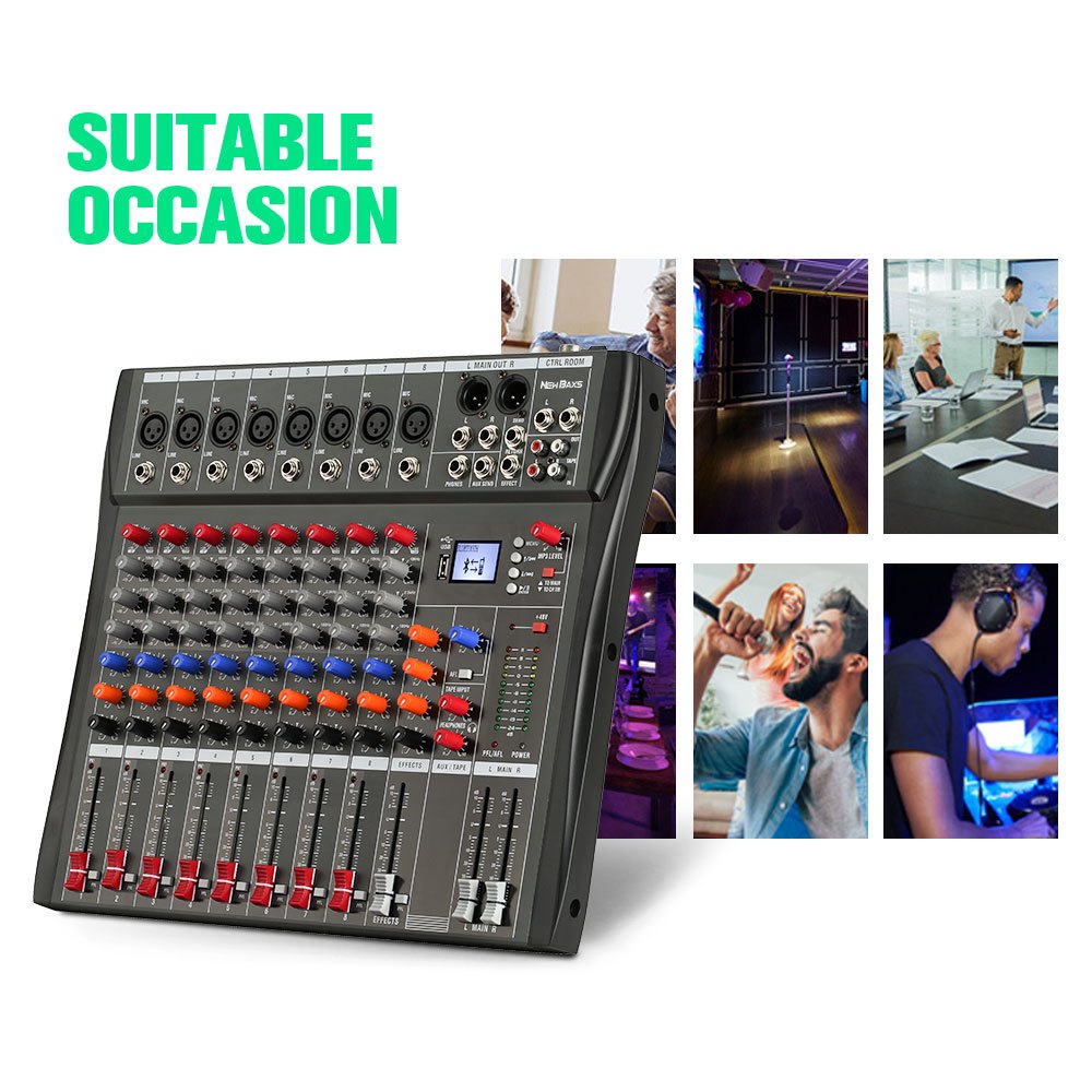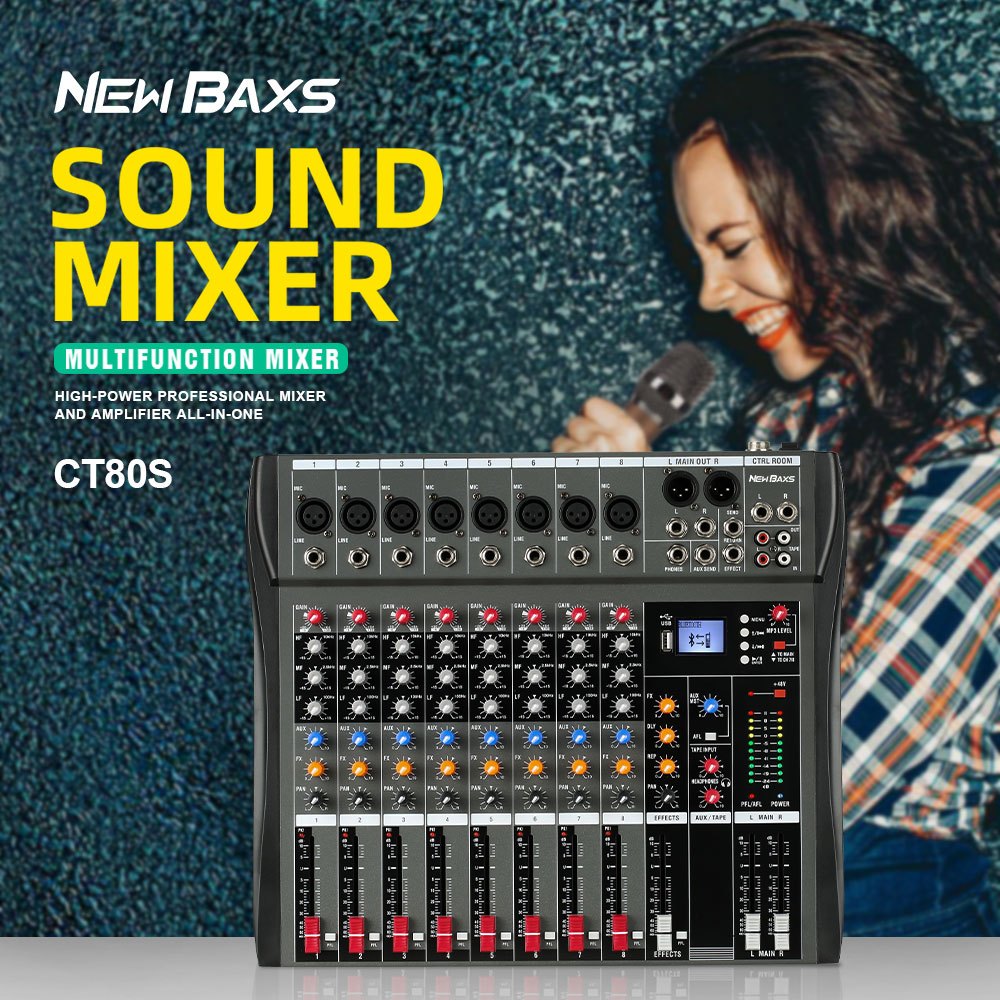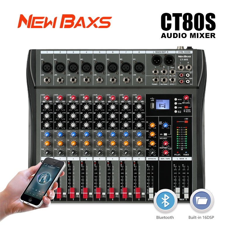 NEW BAXS CT80S AUDIO MIXER PROFESSIONAL 8 CHANNEL REVERBERATION EQUALIZER EFFECT CONGENITAL SUPPORTS BLUETOOTH PLAYBACK