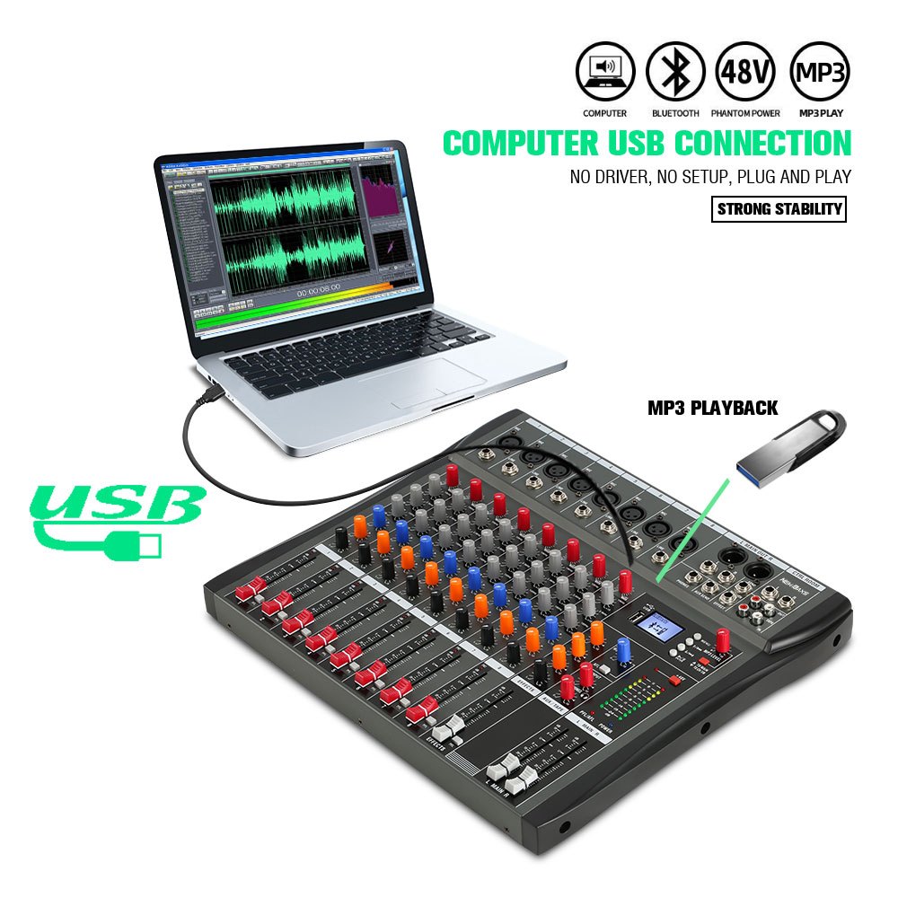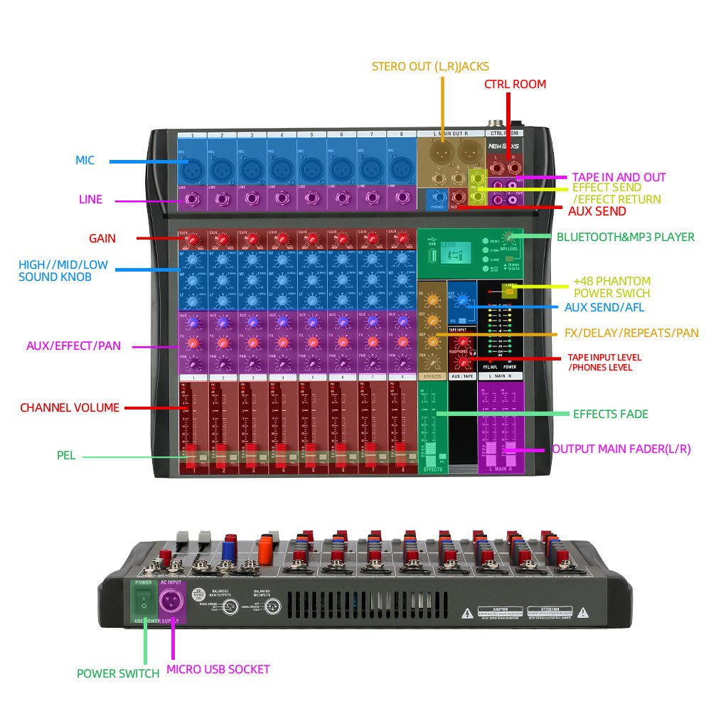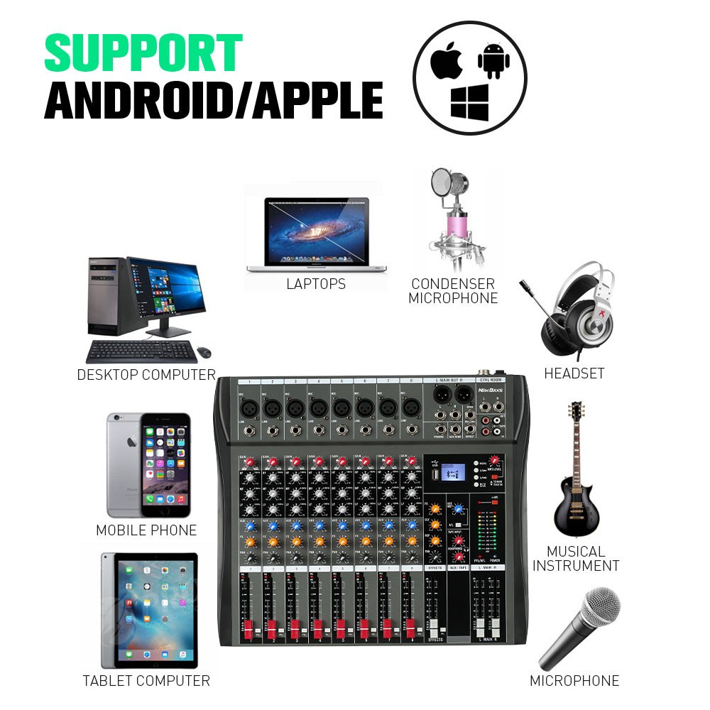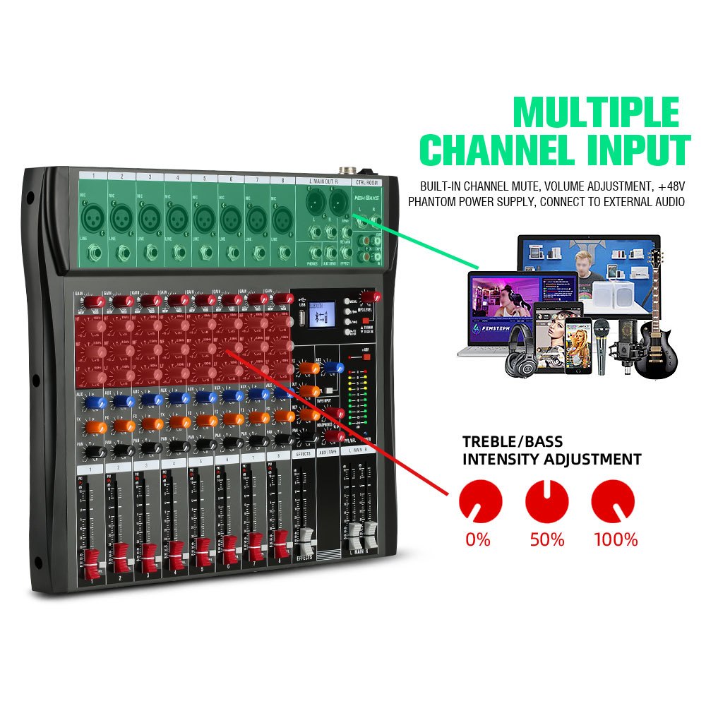 NEW BAXS CT80S AUDIO MIXER PROFESSIONAL 8 CHANNEL REVERBERATION EQUALIZER EFFECT CONGENITAL SUPPORTS BLUETOOTH PLAYBACK