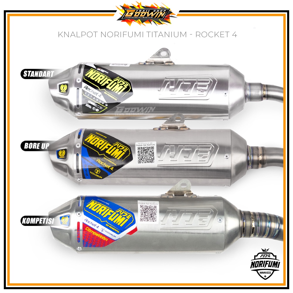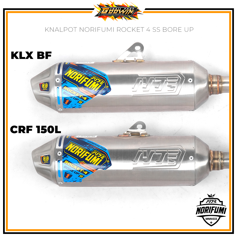 KNALPOT NORIFUMI ROCKET 4 TITANIUM KOMPETISI BORE UP SE KLX 150 BF DT / KLX 140 BUILT UP CRF 150 L WR 155 R STAINLESS ORIGINAL