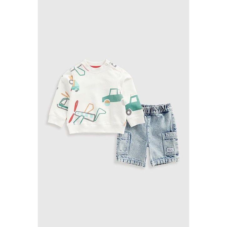 Terbaru Mothercare Denim Shorts and Sweat Top Set - Set Pakaian Bayi Laki-laki (Krem)