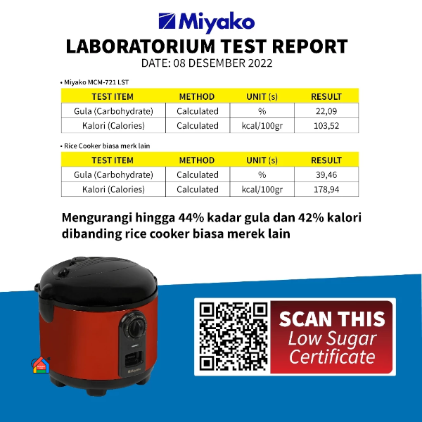 Magic Com Miyako MCM 721 LST Low Sugar (1,8 Liter) / Rice Cooker Miyako Rendah Gula dan Carbo MCM721LST