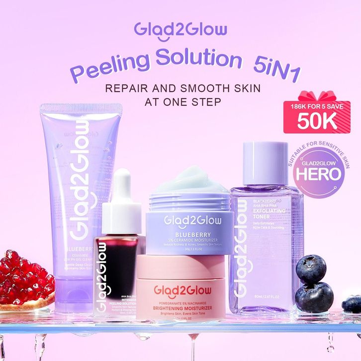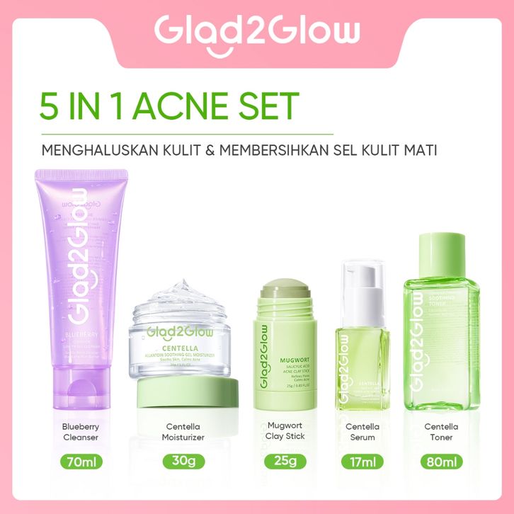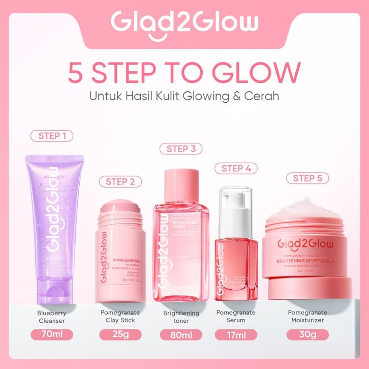 Glad2Glow Official Paket 5pcs with Cleanser + Clay Stick + Toner + Serum + Moisturizer Serum Wajah Pelembab