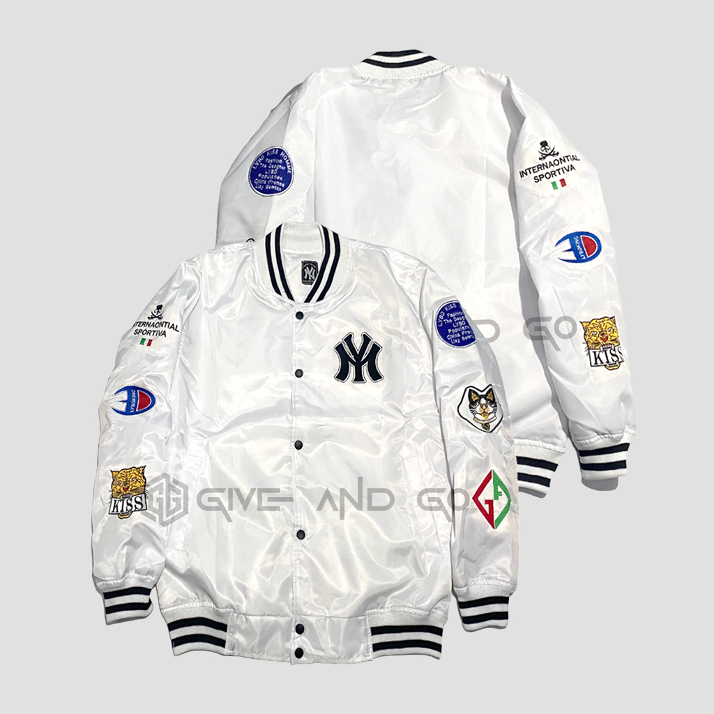 [Mall]Jaket Varsity Baseball Pria Wanita Black Motif Gambar Full Bordir - fsh11