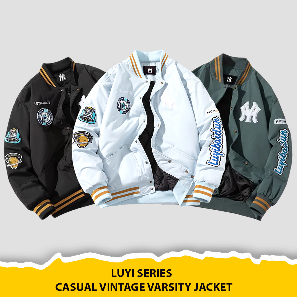 [Mall]Jaket Varsity Baseball Pria Wanita Warna Putih Bahan Taslan Full Bordir - fsh11