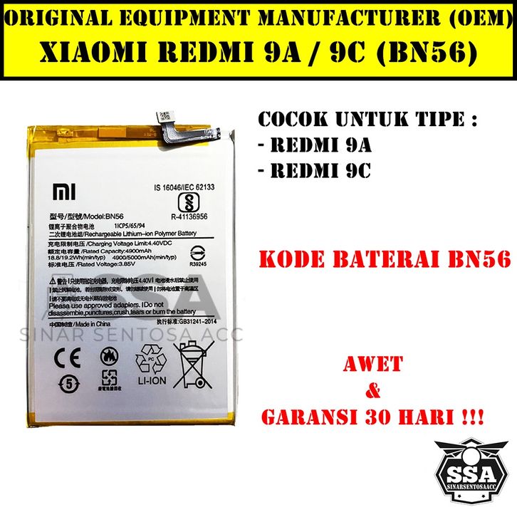 Baterai Redmi 9a 9c a1 BN56 Redmi9a Redmi9c BN 56 Original OEM Batu Batere Batre Battery Batrai Batrei ori hp Garansi