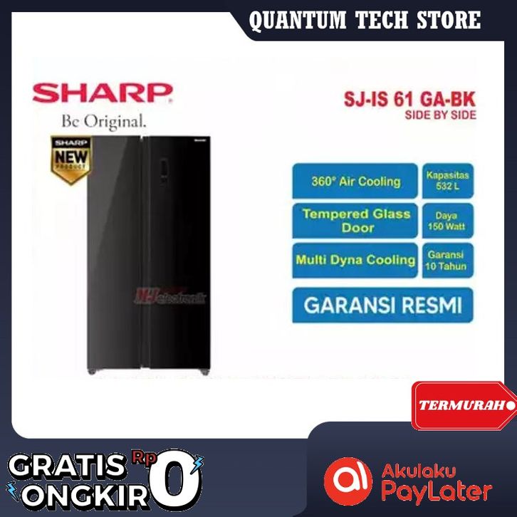 FREE ONGKIR KULKAS SHARP SJ-IS 61 GA-BK LEMARI ES 2 PINTU SIDE BY SIDE TANPA BUNGA ES GARANSI RESMI