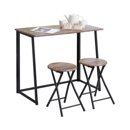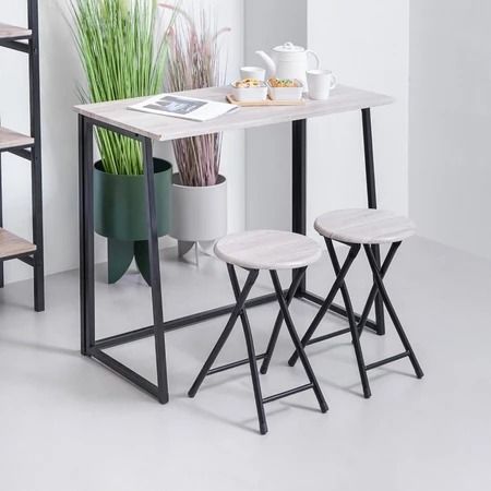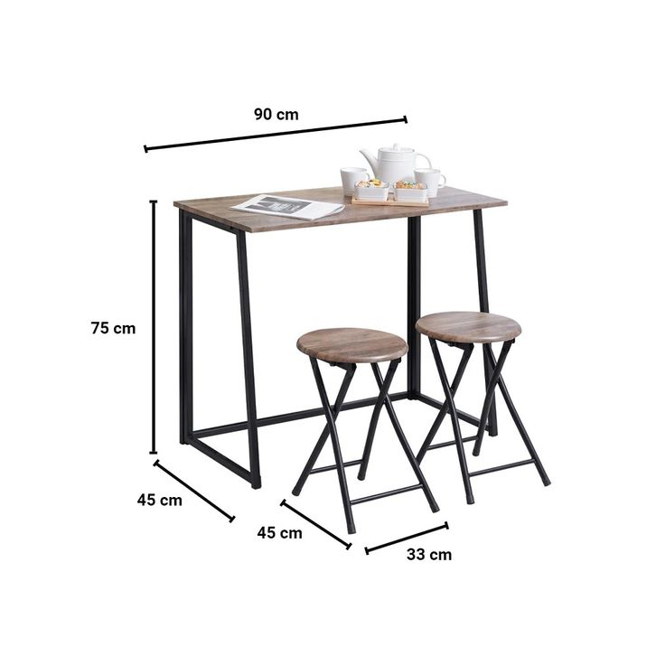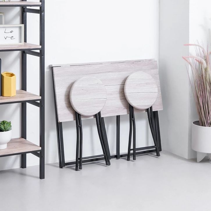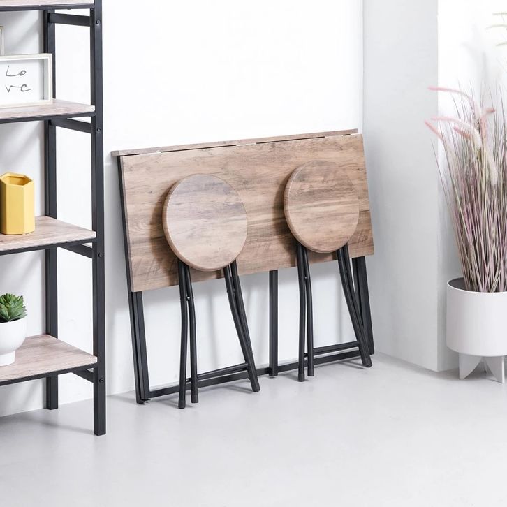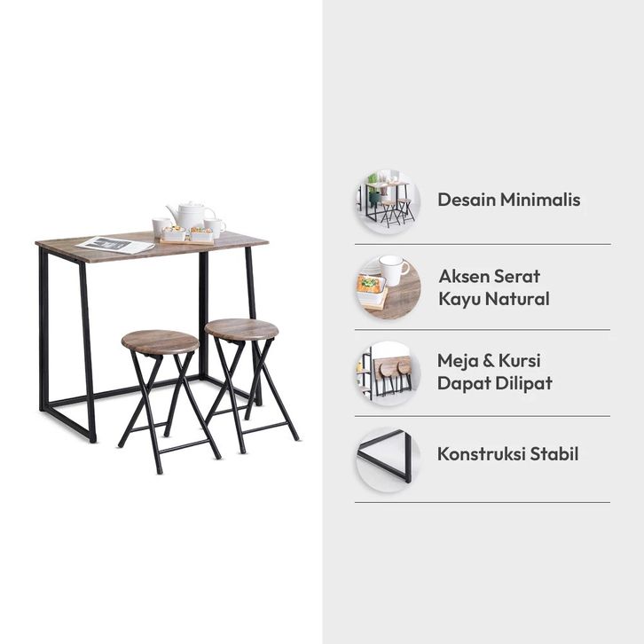 Set Meja Makan Lipat 2 Bangku - Cokelat Walnut Folding Dining Table Dinner Table Meja Kursi Ruang Makan Aesthetic