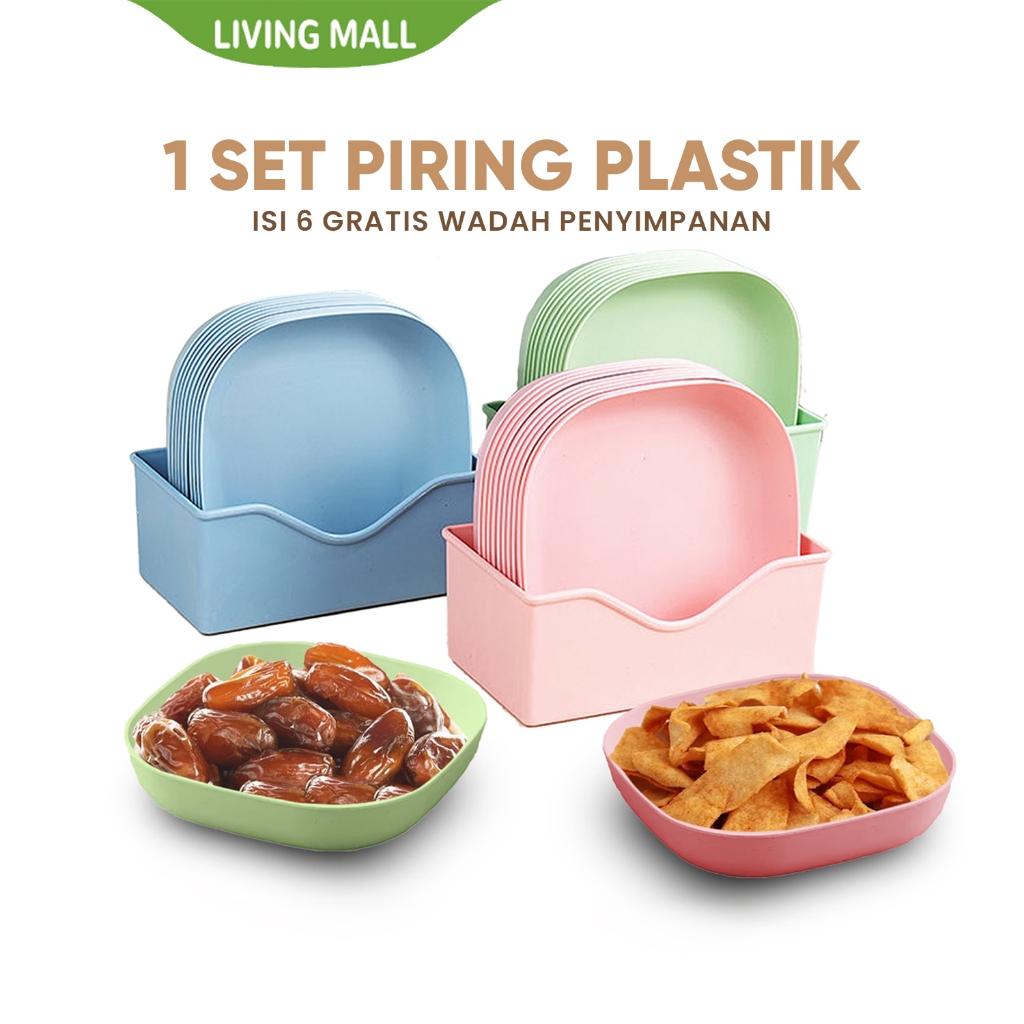 LIVING MALL 1 SET Piring Plastik L11 Piring Buah/Snack/Piring Serbaguna Bisa Microwave GRATIS WADAH