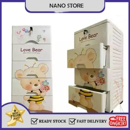 (GRATIS ONGKIR) Lemari Pakaian Plastik Susun 4 Susun 5 Lemari plastik Babby Karakter Lucu