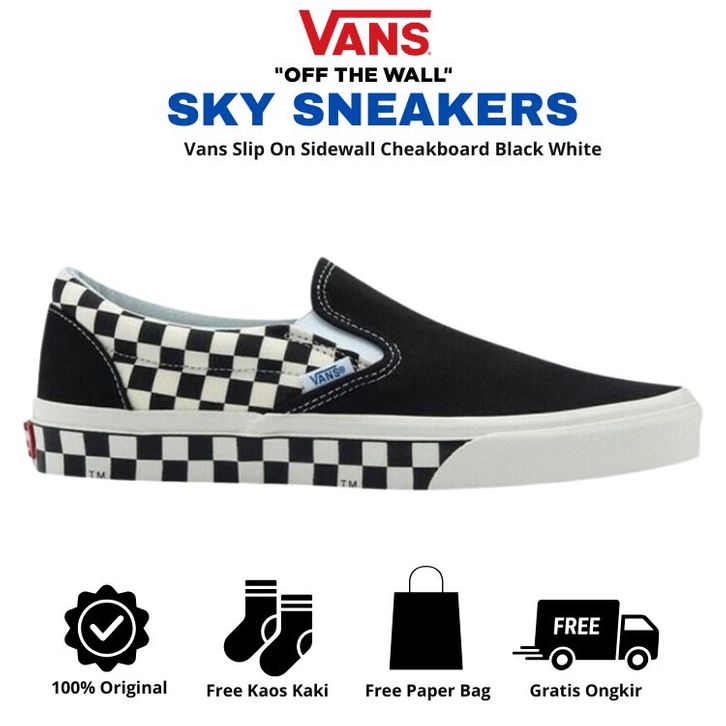 [Mall] SEPATU VANS ORIGINAL SNEAKER PRIA WANITA VANS SLIP ON SIDEWALL CHECKERBOARD BLACK WHIT E ORIGINAL