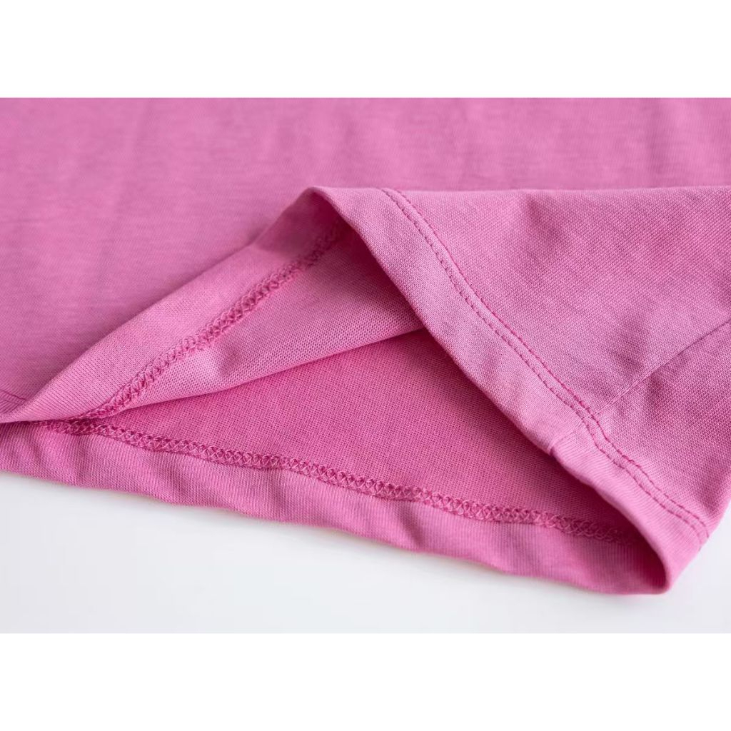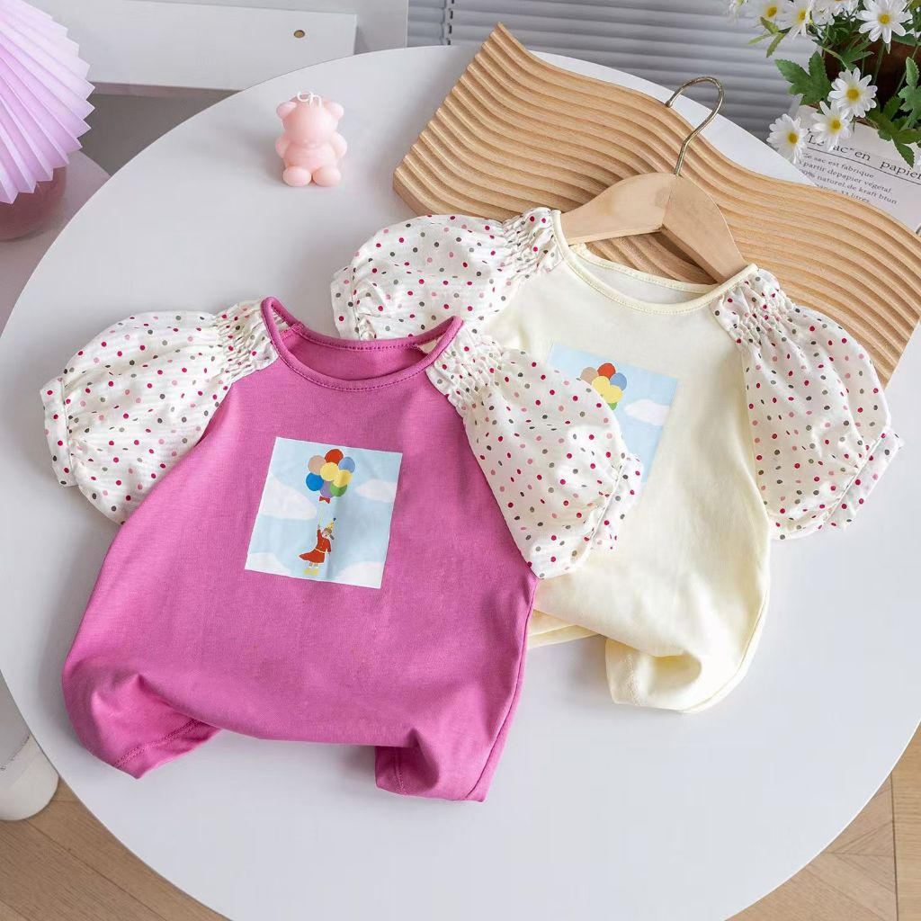 Anak perempuan berusia 2-9 tahun kaos lengan pendek polkadot merah muda leher bulat Korea