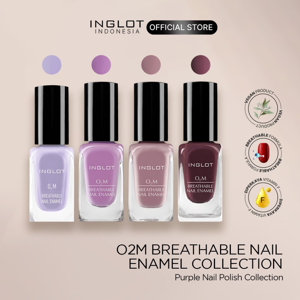 INGLOT O2M BREATHABLE PURPLE NAIL POLISH COLLECTION - KOLEKSI KUTEK / CAT KUKU WARNA UNGU HALAL, WUDHU FRIENDLY