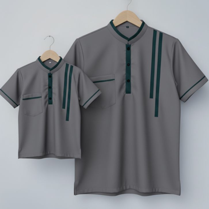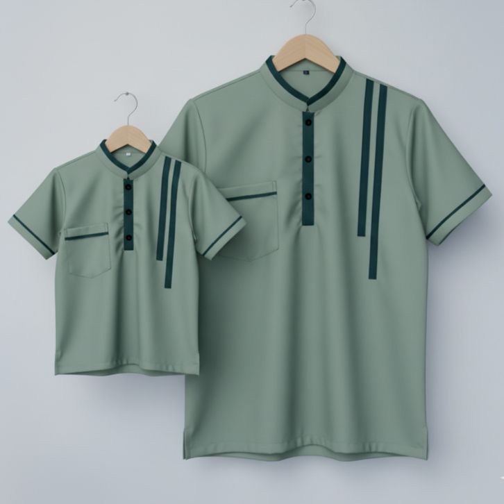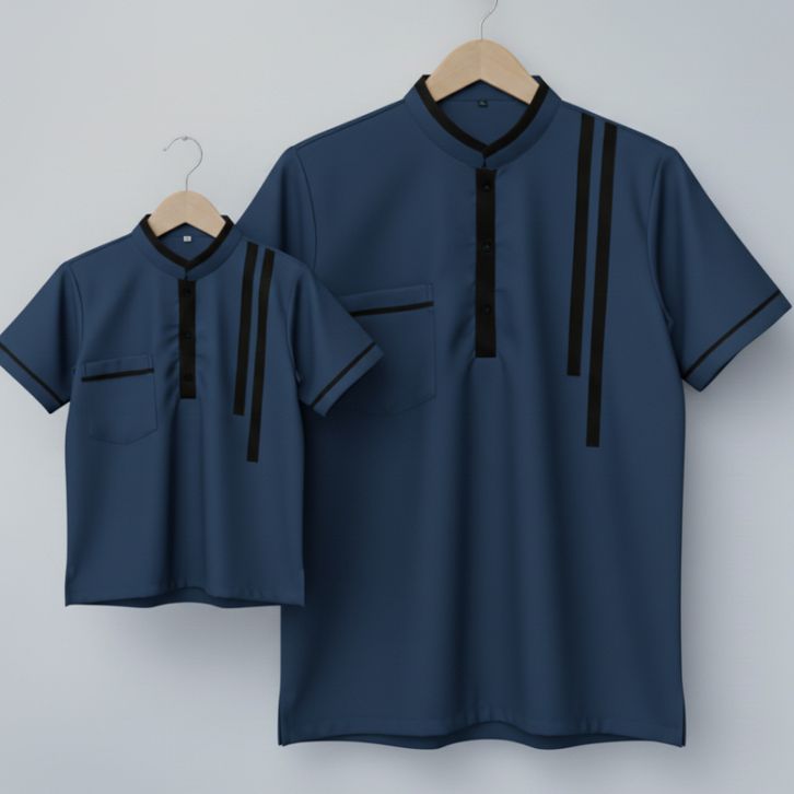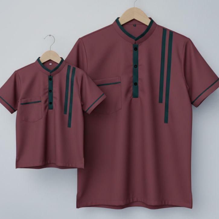 Baju Koko Kemeja Couple Ayah dan Anak Bahan Katun Micro Lengan Pendek