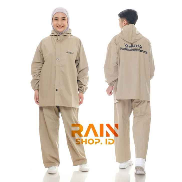 AKULA Jas Hujan Raincoat Pria Wanita Dewasa Terbaik Bahan PVC Anti Rembes Mocca
