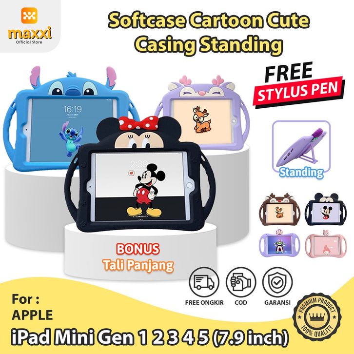 Softcase ipad Original Pelindung Silikon iPad Mini Generasi Gen 1 2 3 4 5 BONUS Tali Lanyard Stylus Pen Case Anak iPad