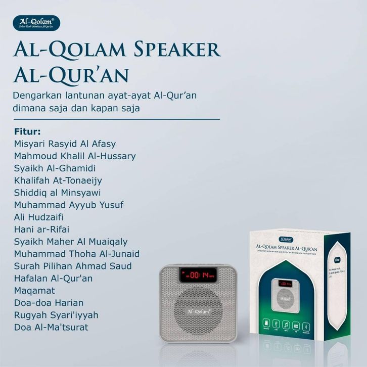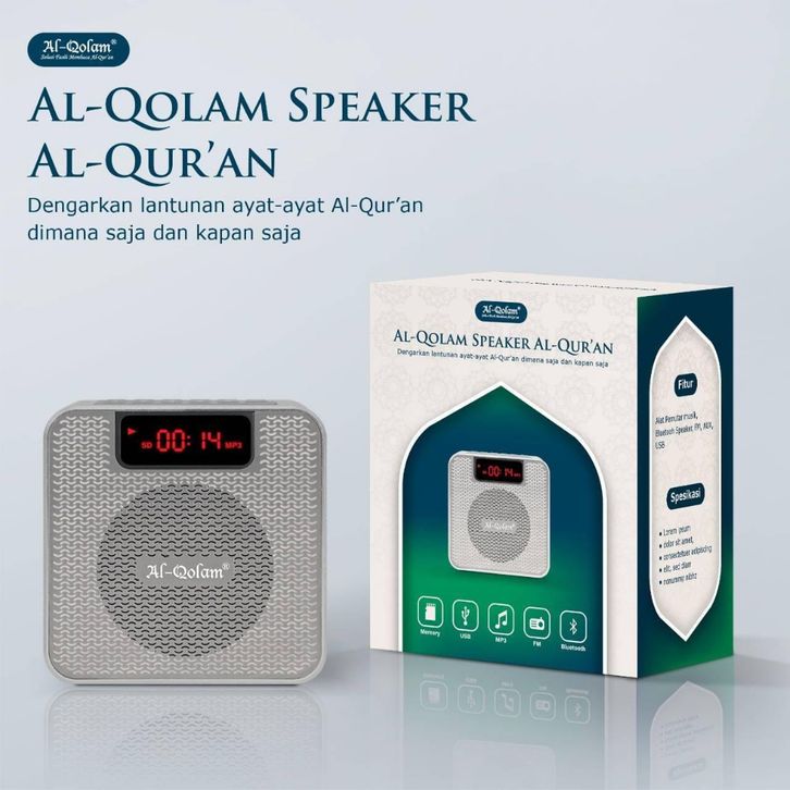 Speaker Murottal Original AL QOLAM Speaker Quran Alqolam 5x10 cm Silver