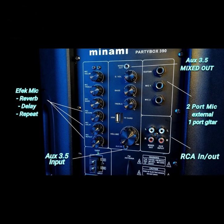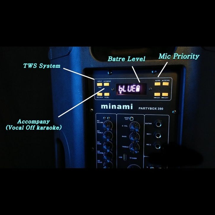 Minami PB-390 Partybox Speaker Portable 15Inch Include 2 Mic Wireless