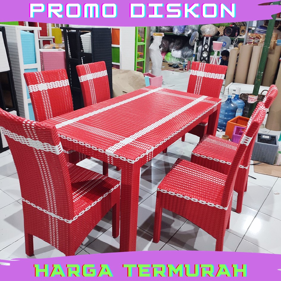 Set Meja Makan Kursi 6 Anyaman Rotan Sintetis Warna Warni + Jok Busa Meja Makan Set Meja Makan 6 Kursi Meja Makan Rotan