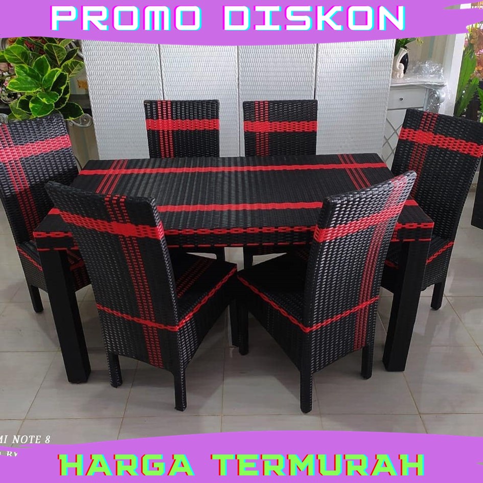 Set Meja Makan 6 Kursi Anyaman Rotan Sintetis Plus Jok Busa Meja Makan Set Meja Makan Rotan Meja Makan Minimalis 6 Kursi