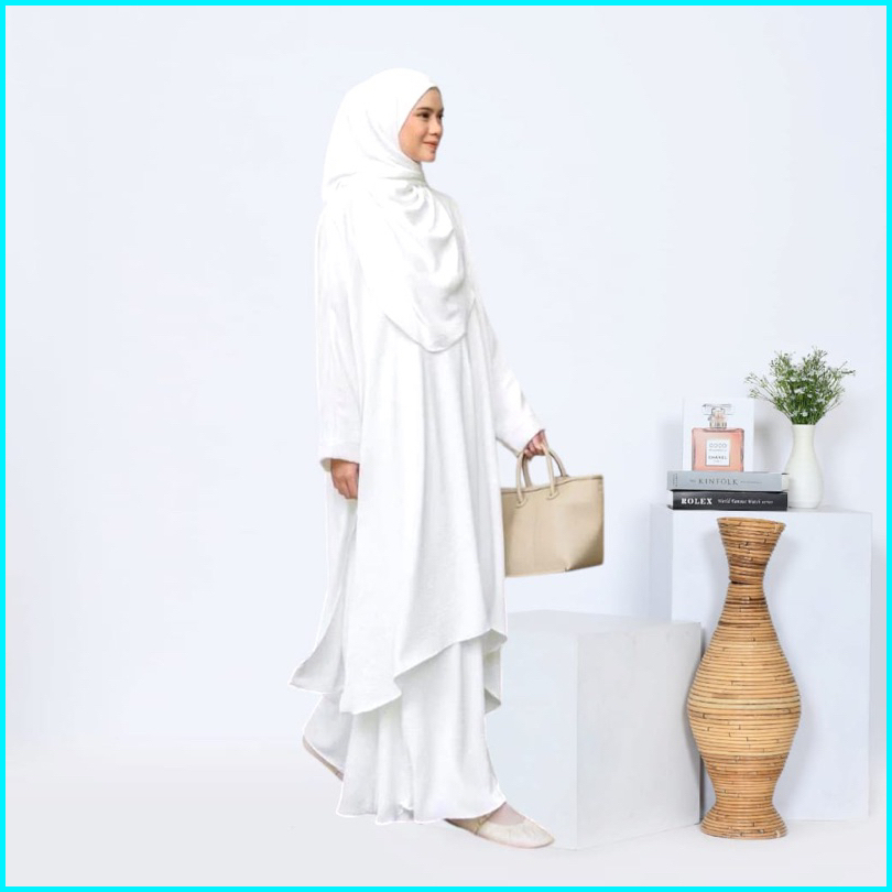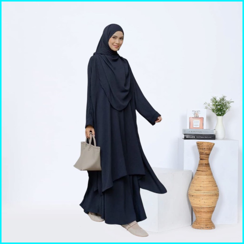 One Set Rok Tunik Melayu Syari Pashmina Oval Setelan Abaya Wanita Set Hijab Crinkle Airflow Premium