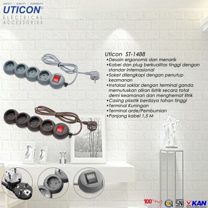 UTICON Stop Kontak 4 Lubang Stopkontak Saklar Bentuk Bulat ST-1488