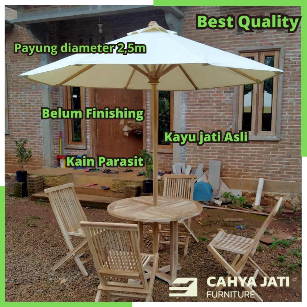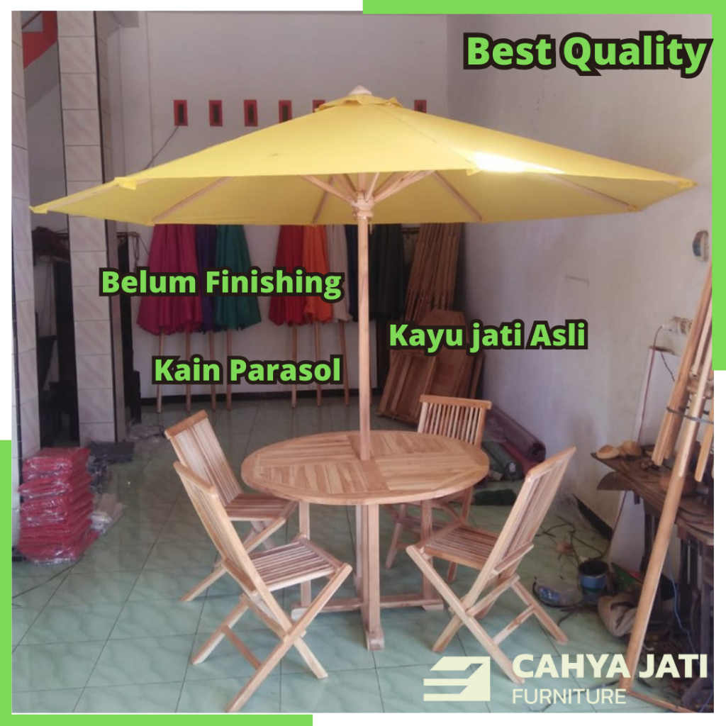 DISCON Set Meja Payung Taman cafe Outdoor Tenda Payung Cafe Kayu Jati 4 Kursi Lipat Jati