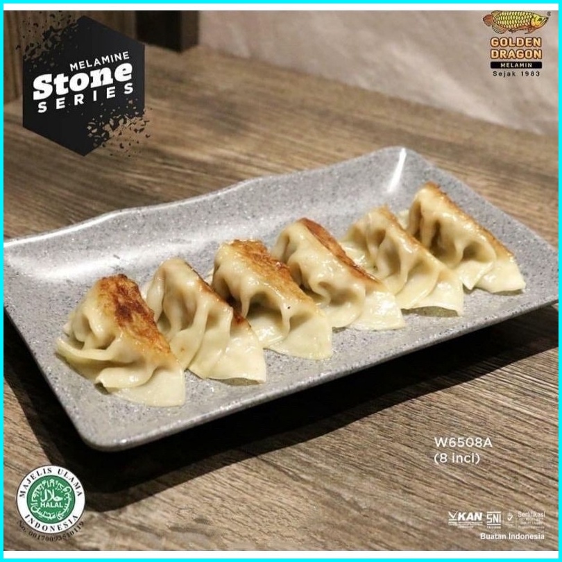 Golden Dragon Melamin - Piring Persegi Melamine Stone Series 8inci - P6508a - Piring Saji Makan Kotak Batu Unik - Food G
