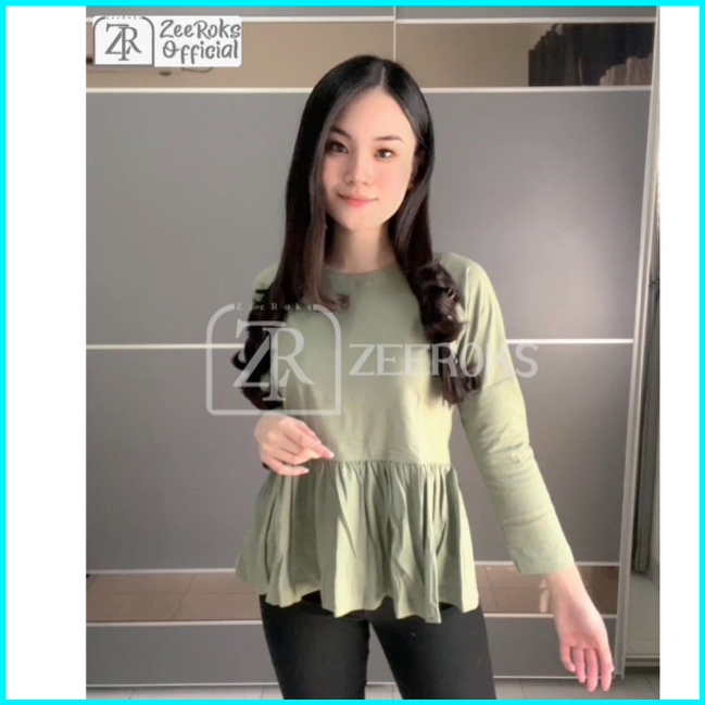 Kaos Zeeroks Terbaru Kaos Wanita Peplum Flare Lengan Panjang Bahan Katun Premium