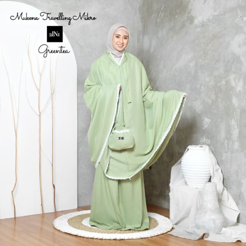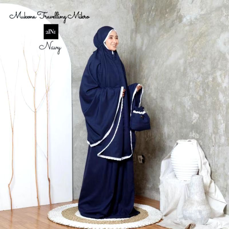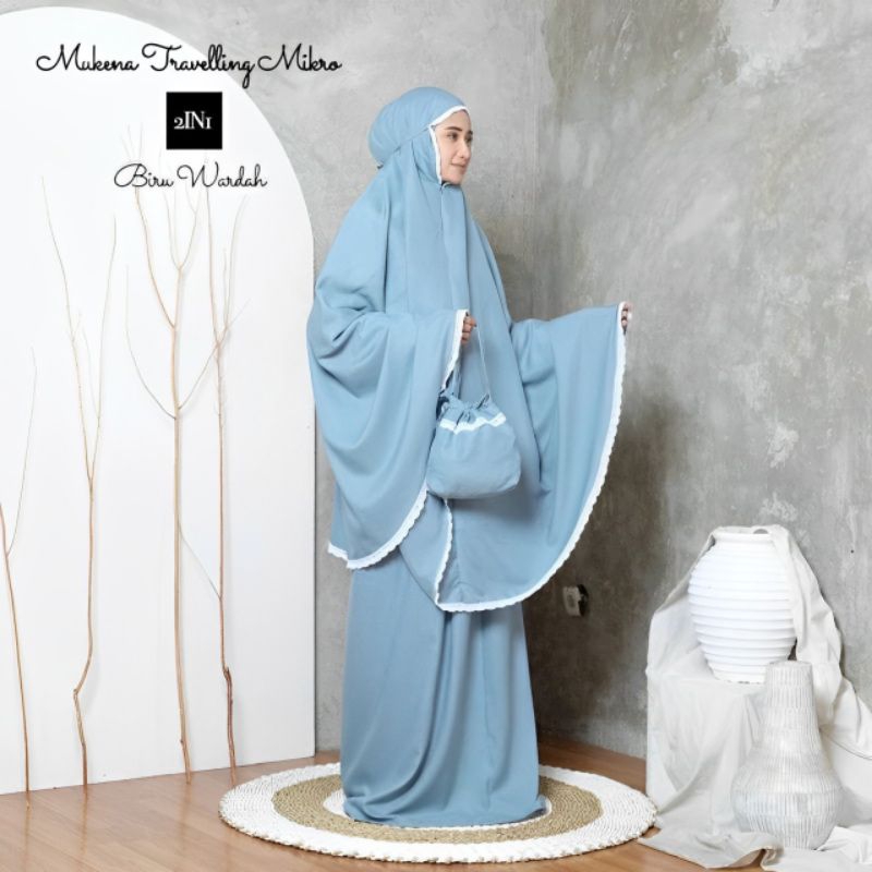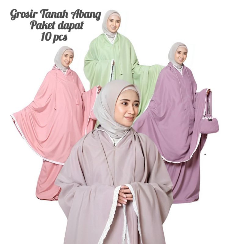 Paket 10 pcs mukena (Grosir)-Mukena Traveling Katun Mikro Premium Renda Rajut Gratis tas kecil