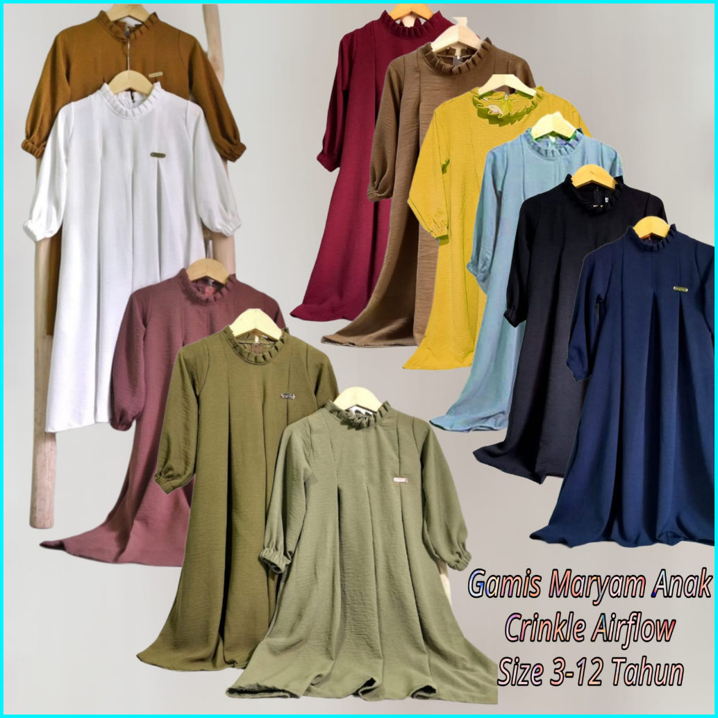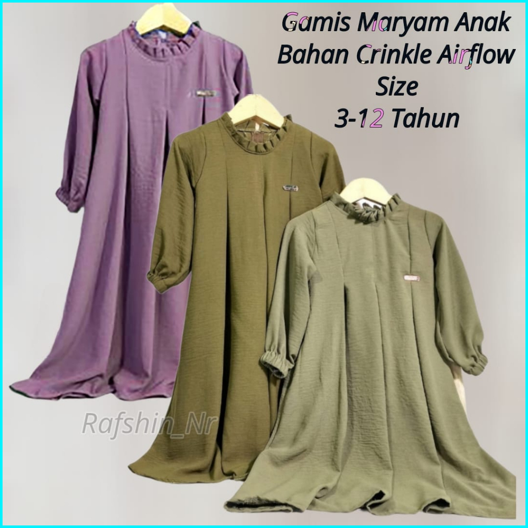Gamis Anak Maryam Cringkle Airflow Daster Anak Usia 3-12 Tahun Modern Kekinian
