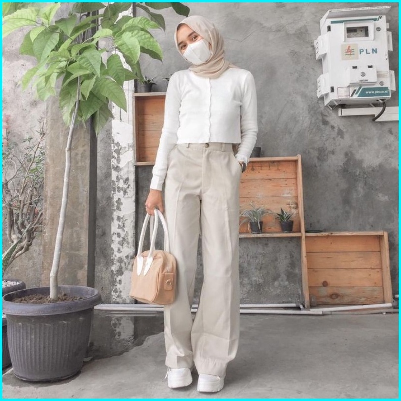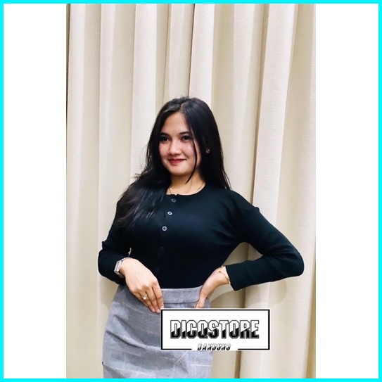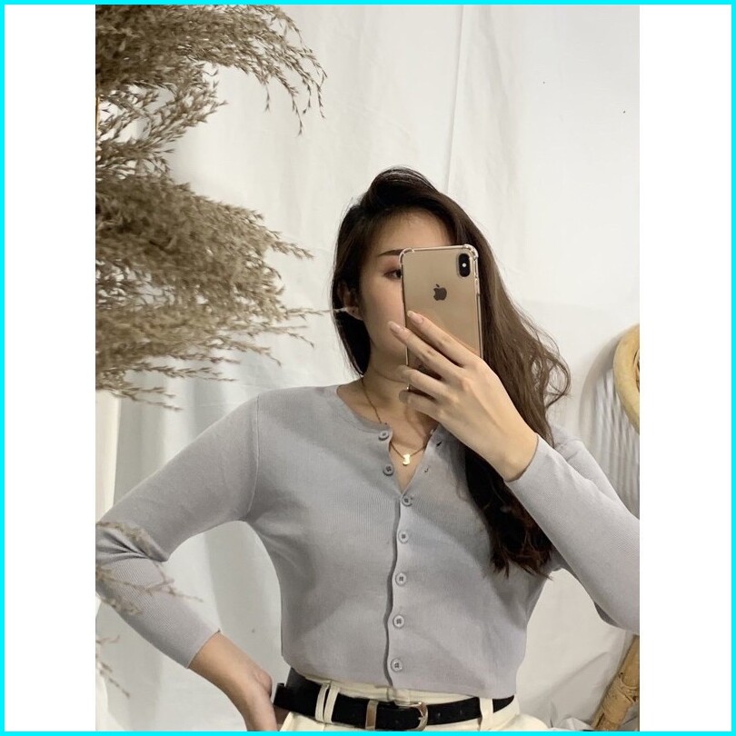 Korean Long Sleeve Cardigan Button Crop Top Cardigan Lengan Panjang Kancing 3007