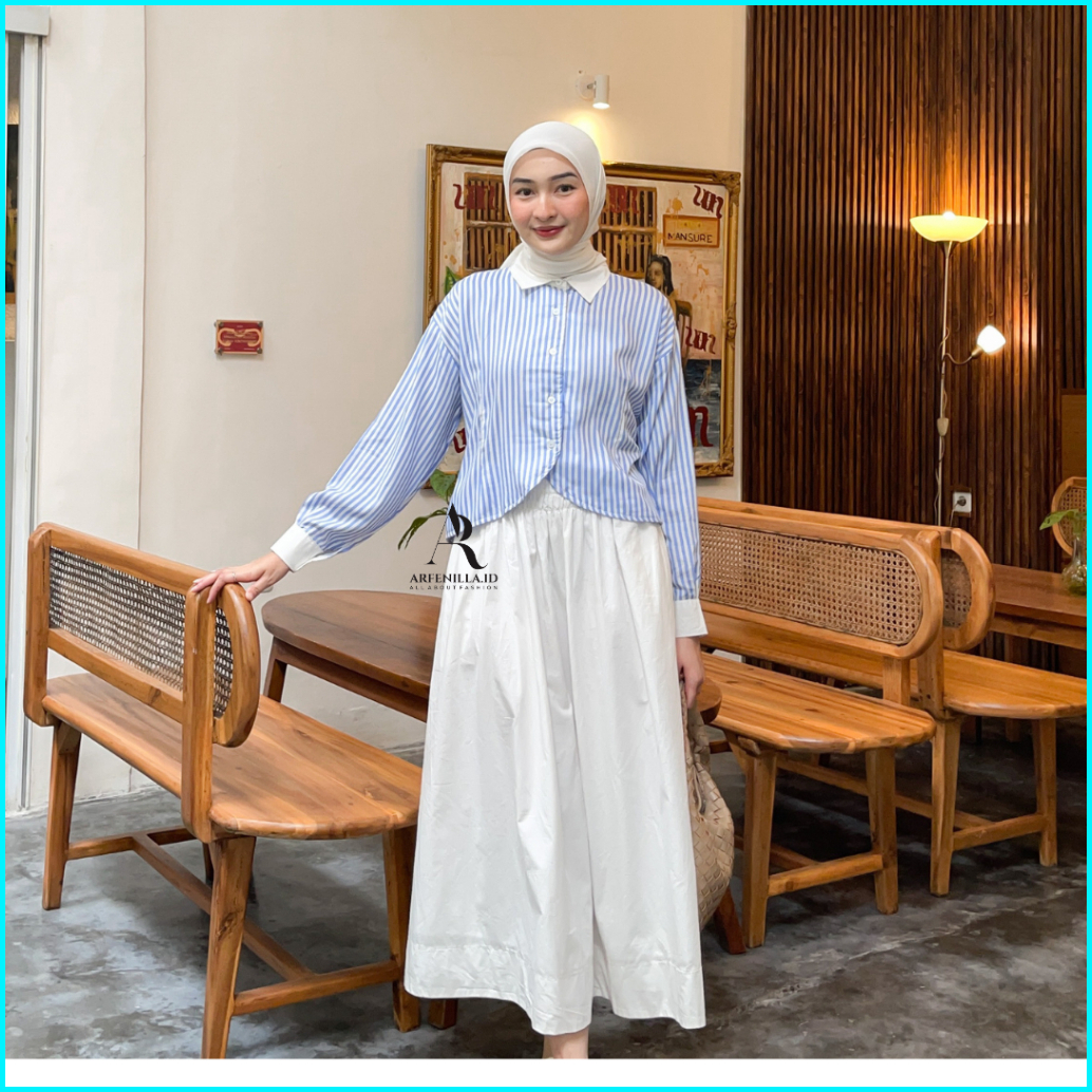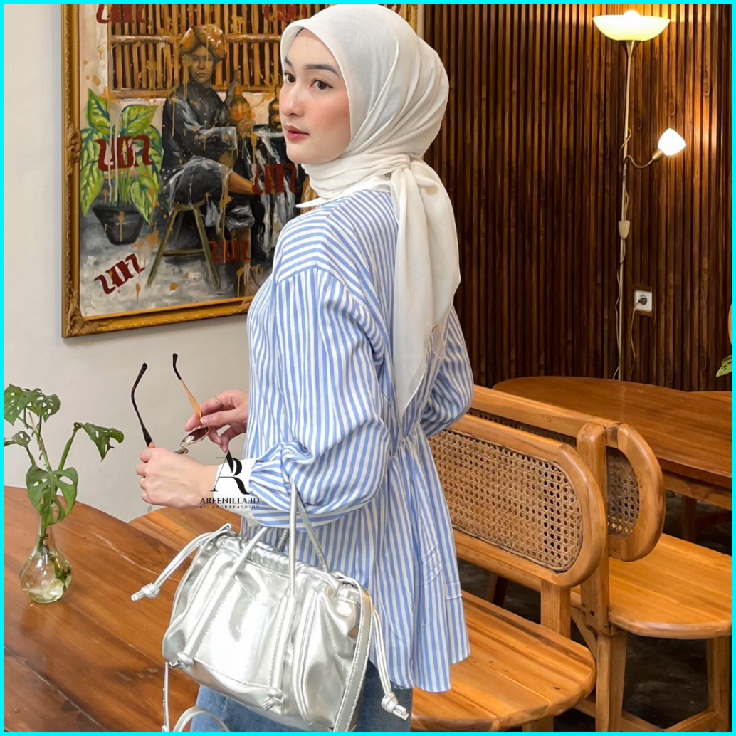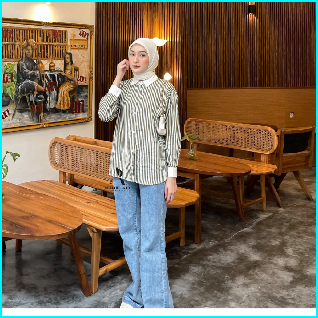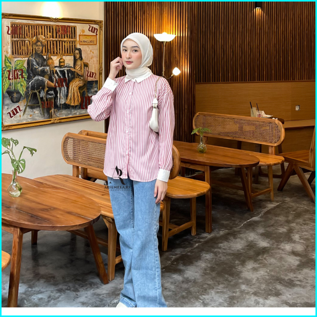 Jingga Shirt Motif Garis Lengan Panjang Rayon