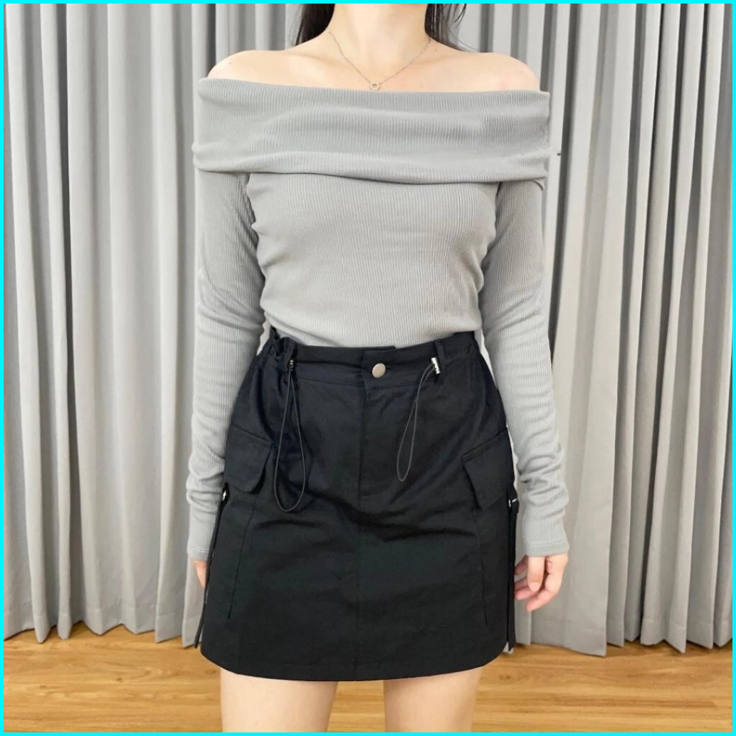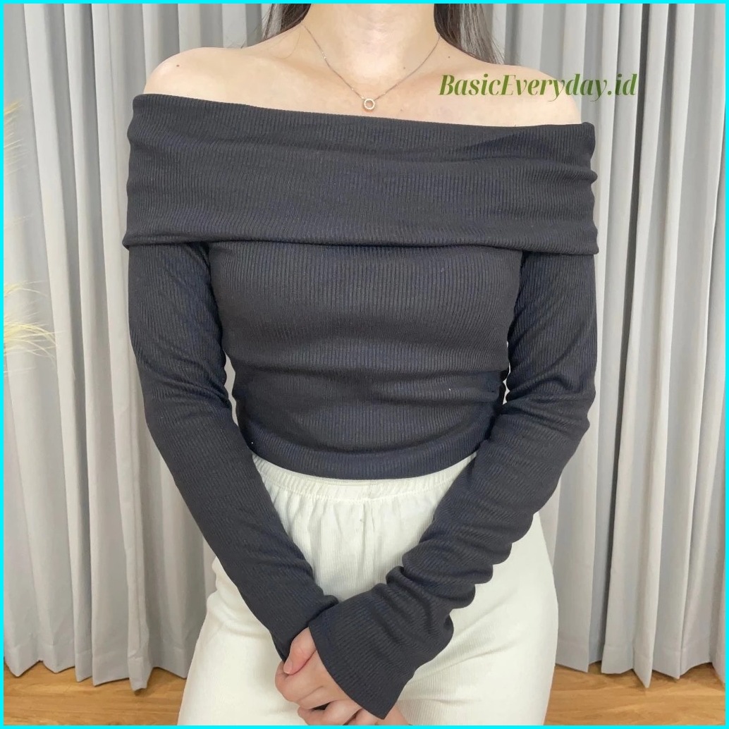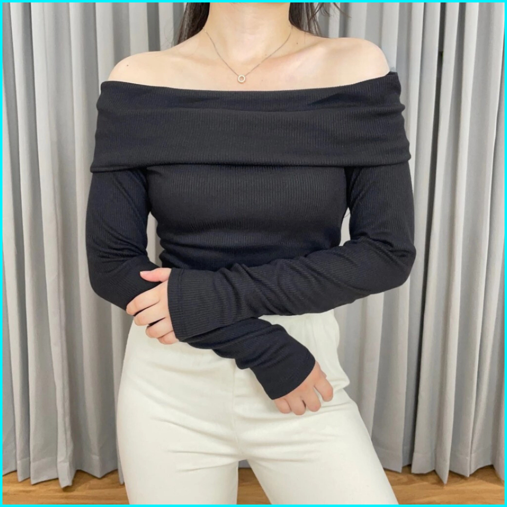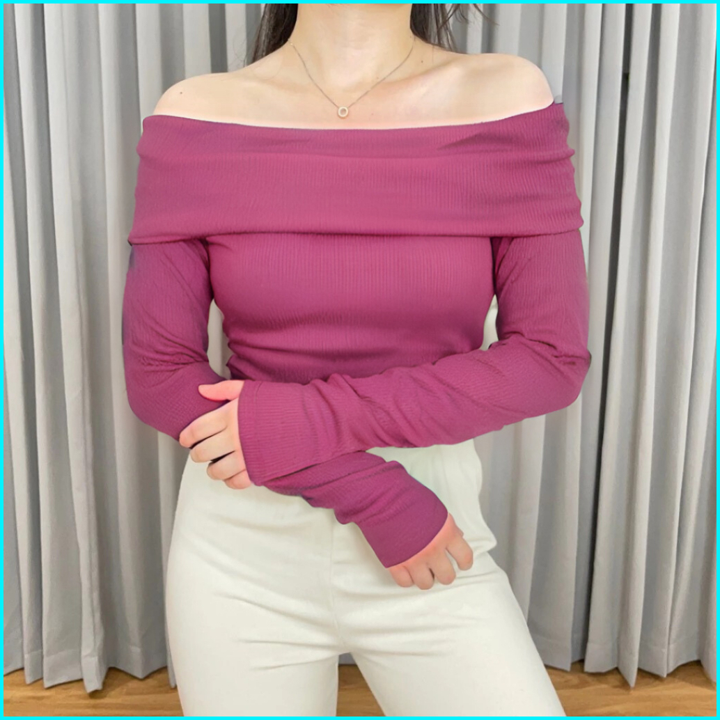 Sabrina Rib Knit Top One Shoulder Wanita Sabrina Wanita Lengan Panjang Blouse Atasan Wanita