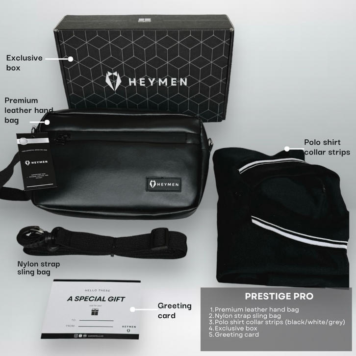 Hampers Handbag Pria Exclusive dan Kaos Polo Stripe Shirt Hampers Kado Cowok Ulang Tahun Cowo Clutch Bag Waterproof Tas