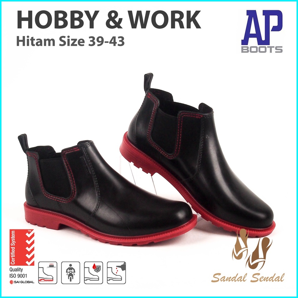 Sepatu Boot Pendek Ap Boots Hobby Work Hitam Merah Casual Bikers