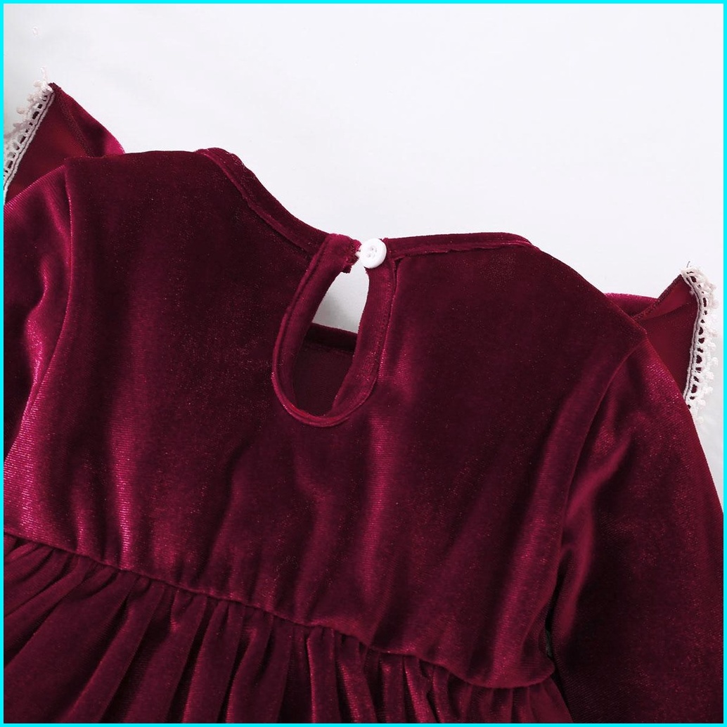 0-7 Tahun Baby Sister Girl Dress Baju Bayi Perempuan Lengan Panjang Ruffle Terbang Lengan Desain Jahitan Renda Gaun Pest