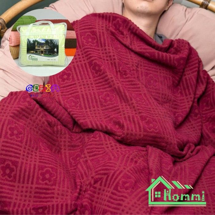 Selimut Selimut Handuk HOMMI Lembut 160x200 Bahan Handuk -BIRU - EMERALD 140x200