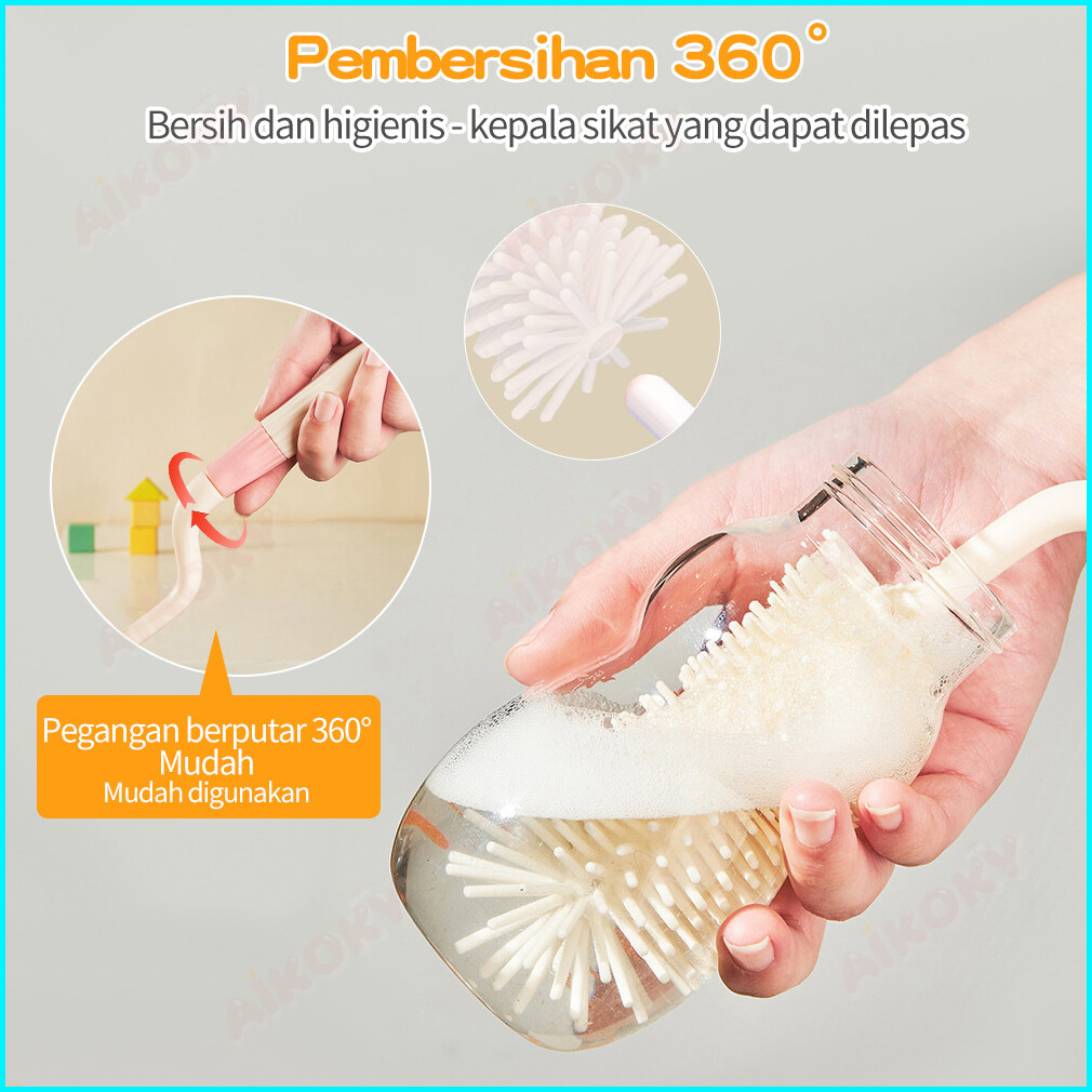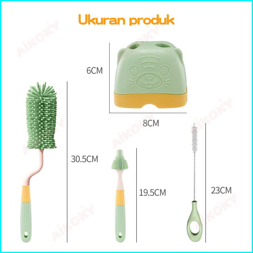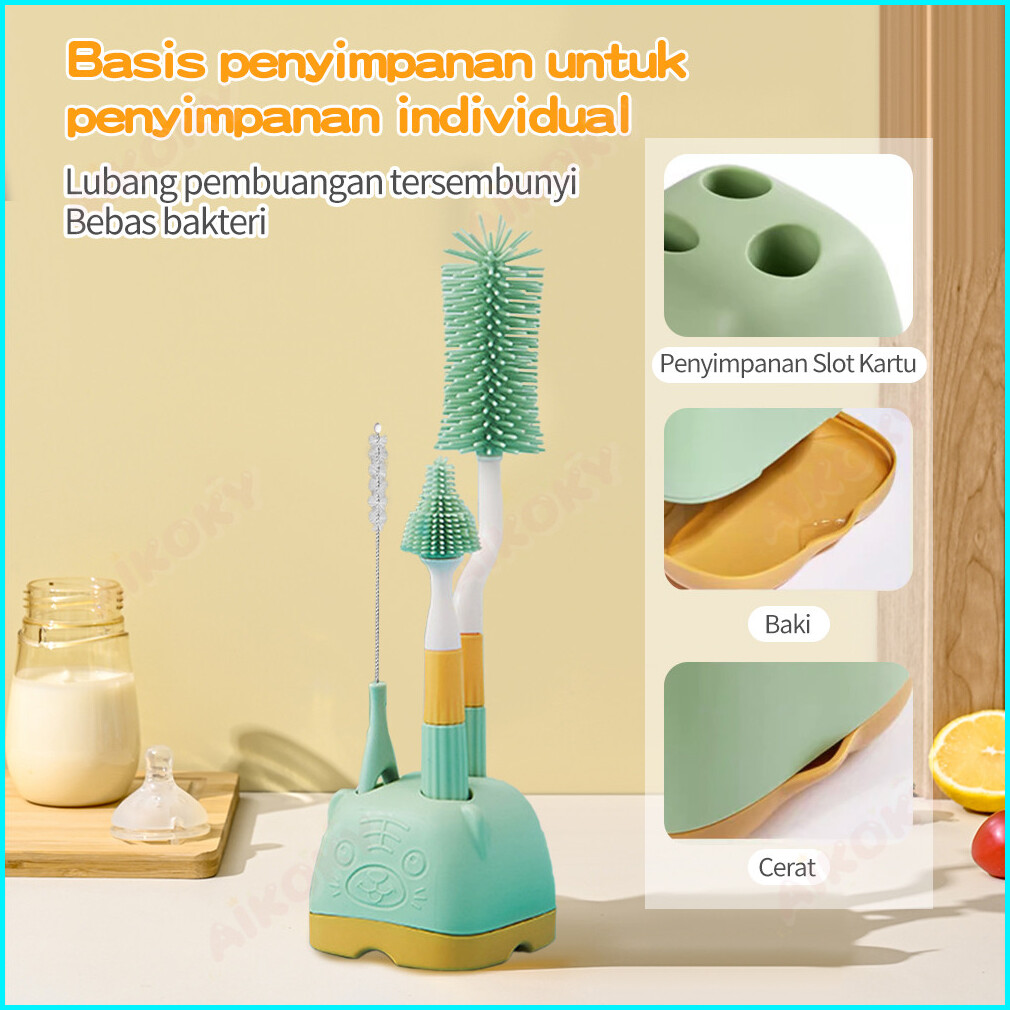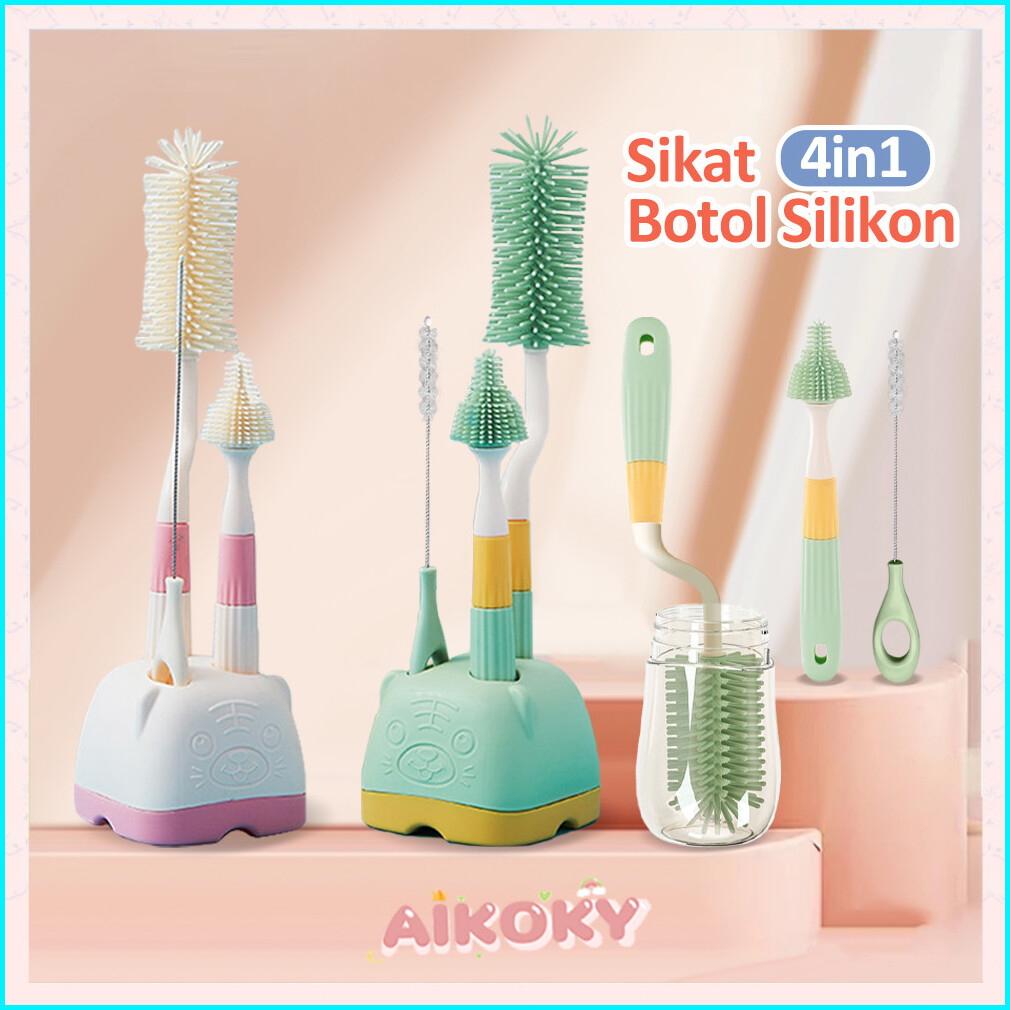 Aikoky Sikat Pembersih Botol Susu Bayi 4 In1 Sikat Dot Silikon Rak Pengering Botol Susu Bayi