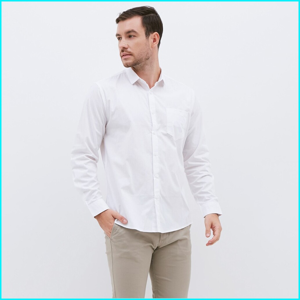 M231 Kemeja Pria Basic Polos Panjang Putih 1468a