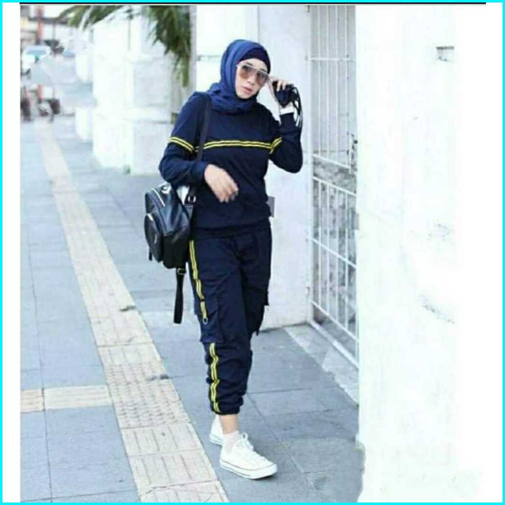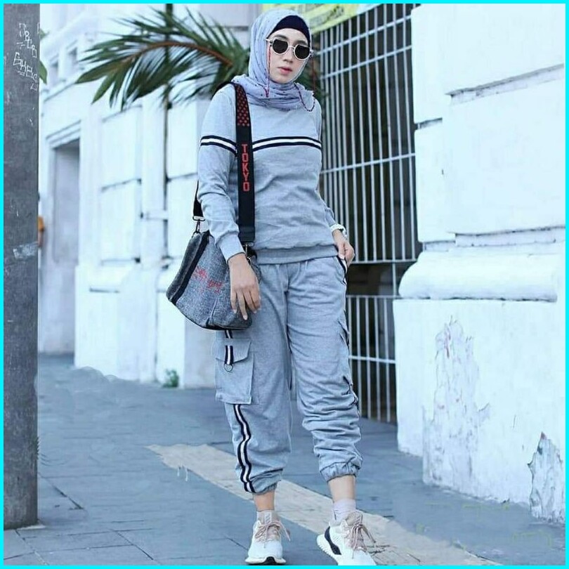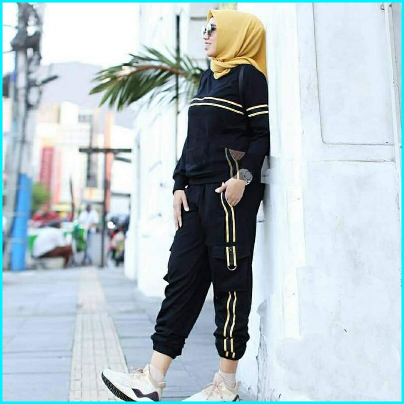 Nabila Set Big Size Gagil Kaos Baju Celana Training Baju Olahraga Wanita Muslim Sweatshirt