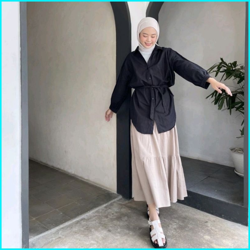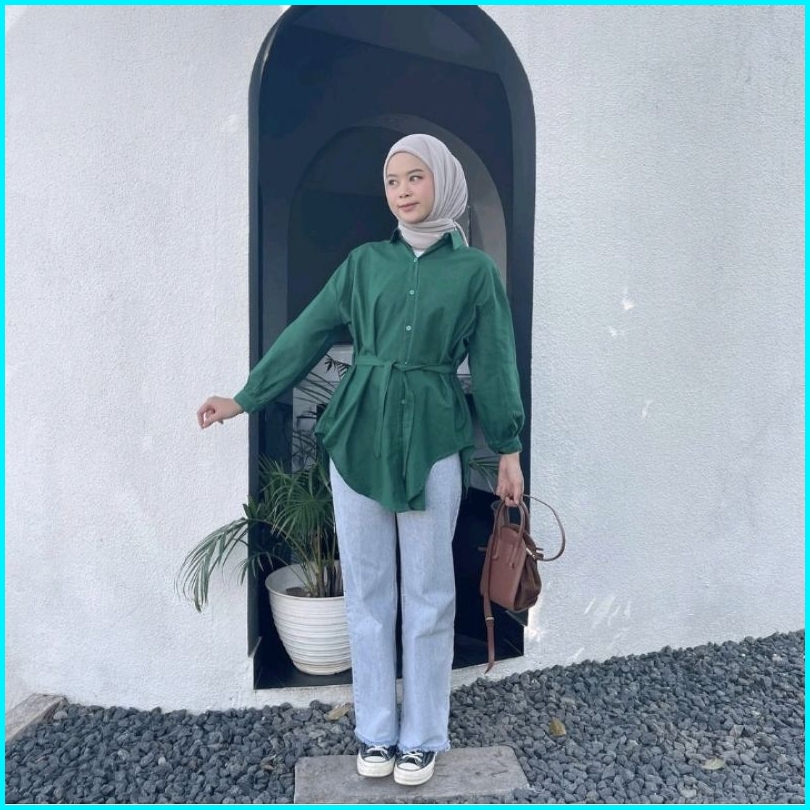 Malka Shirt - Kemeja Oversize Wanita - Oversized Shirt Linen - Atasan Tali Linen