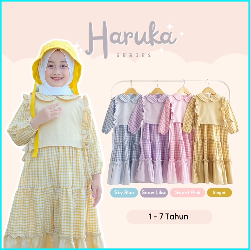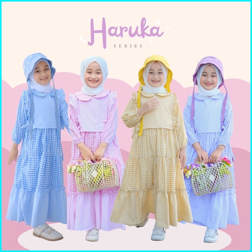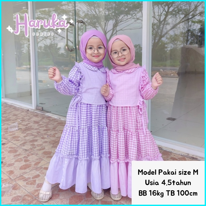 Haruka Dress Gamis Anak Perempuan Gamis Anak Lengan Panjang Motif Kotak