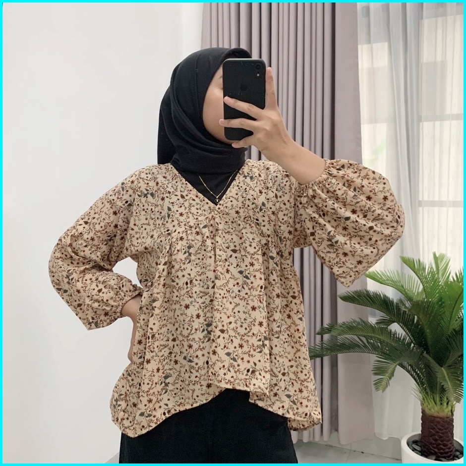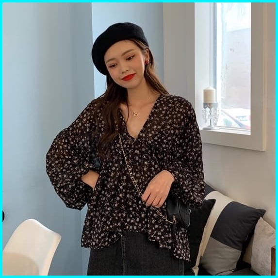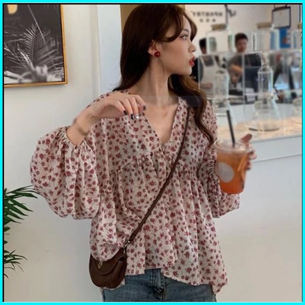 V Blouse Flower Korean Style Vintage Floral Blouse Motif Bunga Korea Olla Sesa Blouse