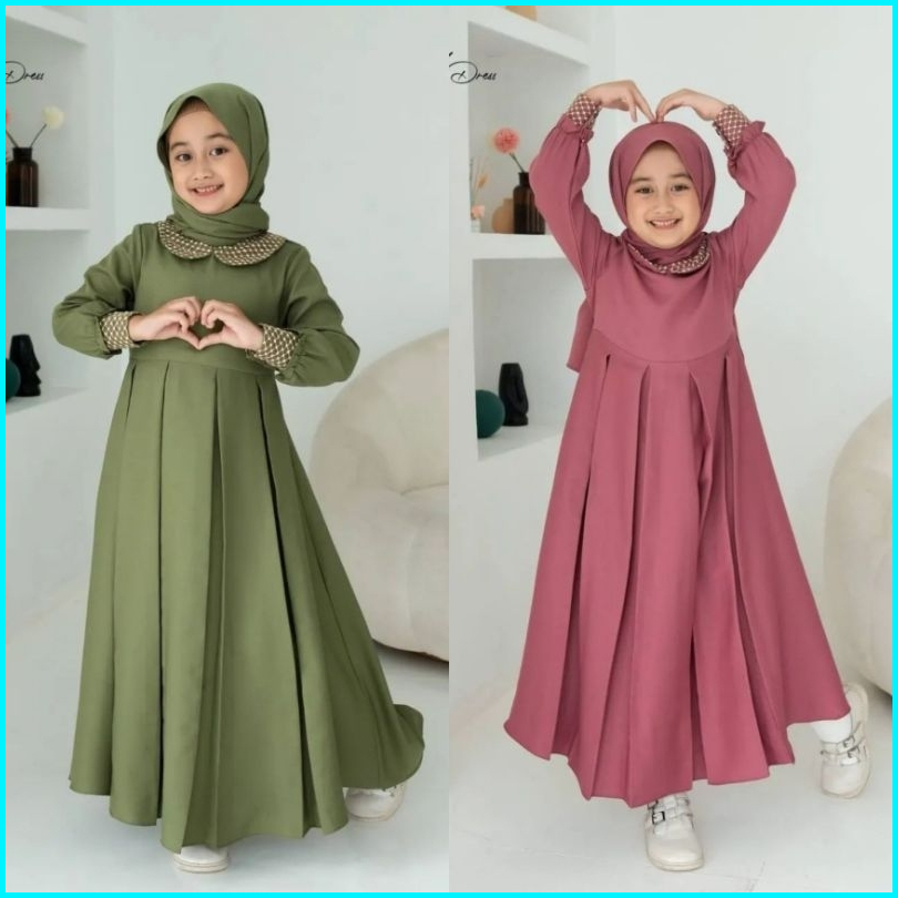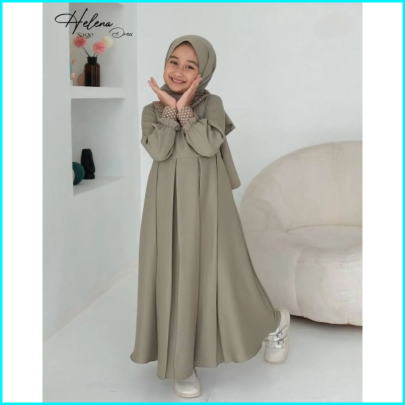 G-co Kids Helena Dress Kids Gamis Anak Terbaru Usia 5-12 Tahun S.m.l.xl Dress Anak Cringkle Gamis Polos Anak Terlaris