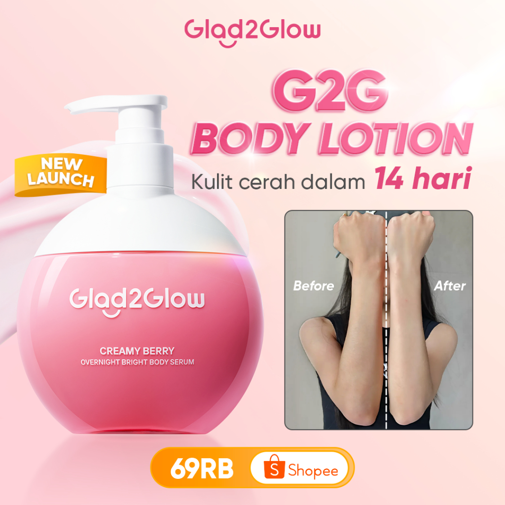 Glad2Glow Creamy Berry Overnight Bright Hand Body Serum 300ml Body Lotion Kulit Mencerahkan G2G